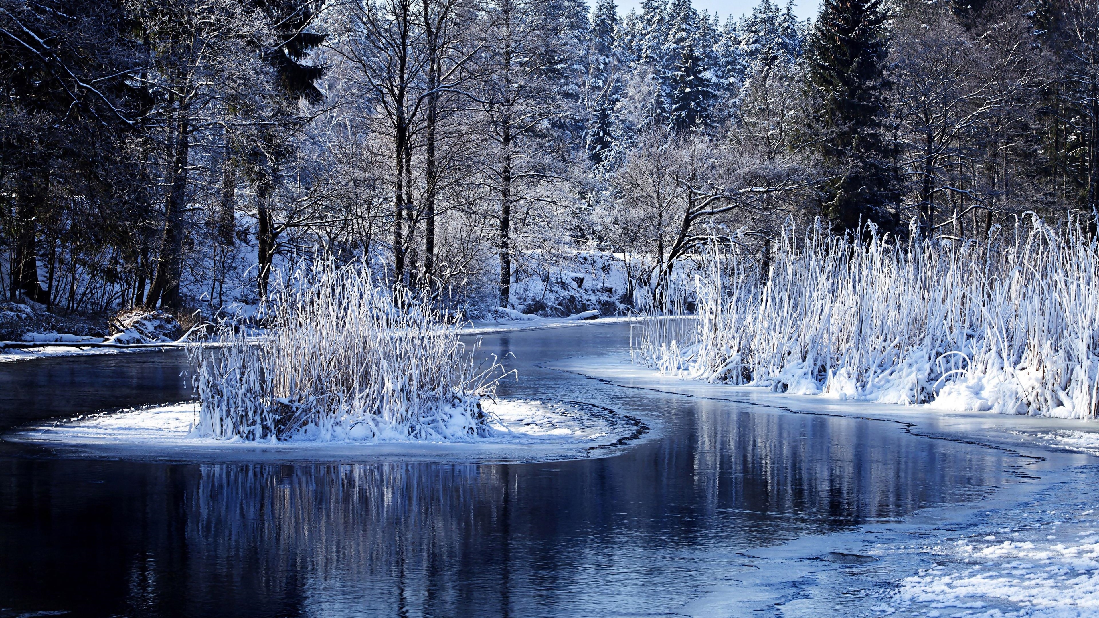 Edytor tapety: Zima, Las, Rzeka, Szuwary