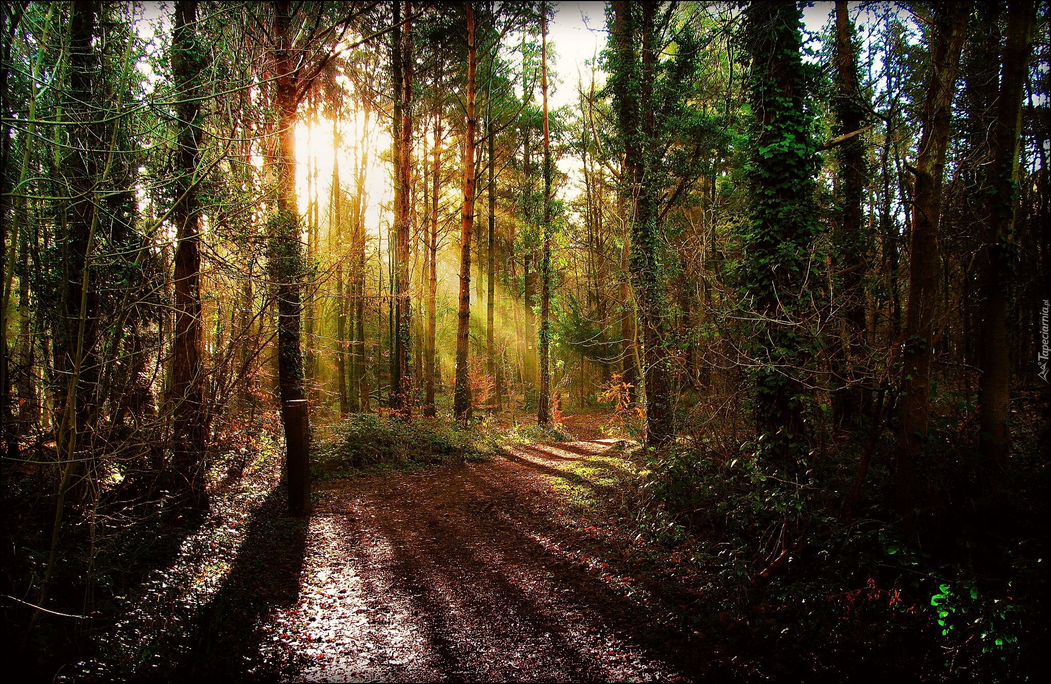 Edytor tapety: Las, Droga, Przebijające, Światło