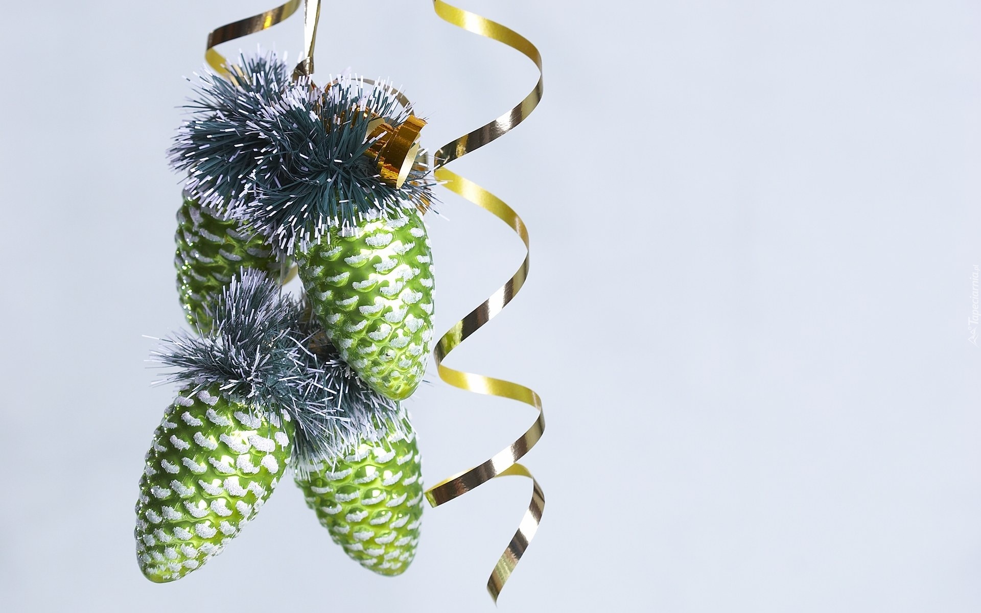 Edytor tapety: Ozdoba, Świąteczna, Szyszki, Wstążeczka