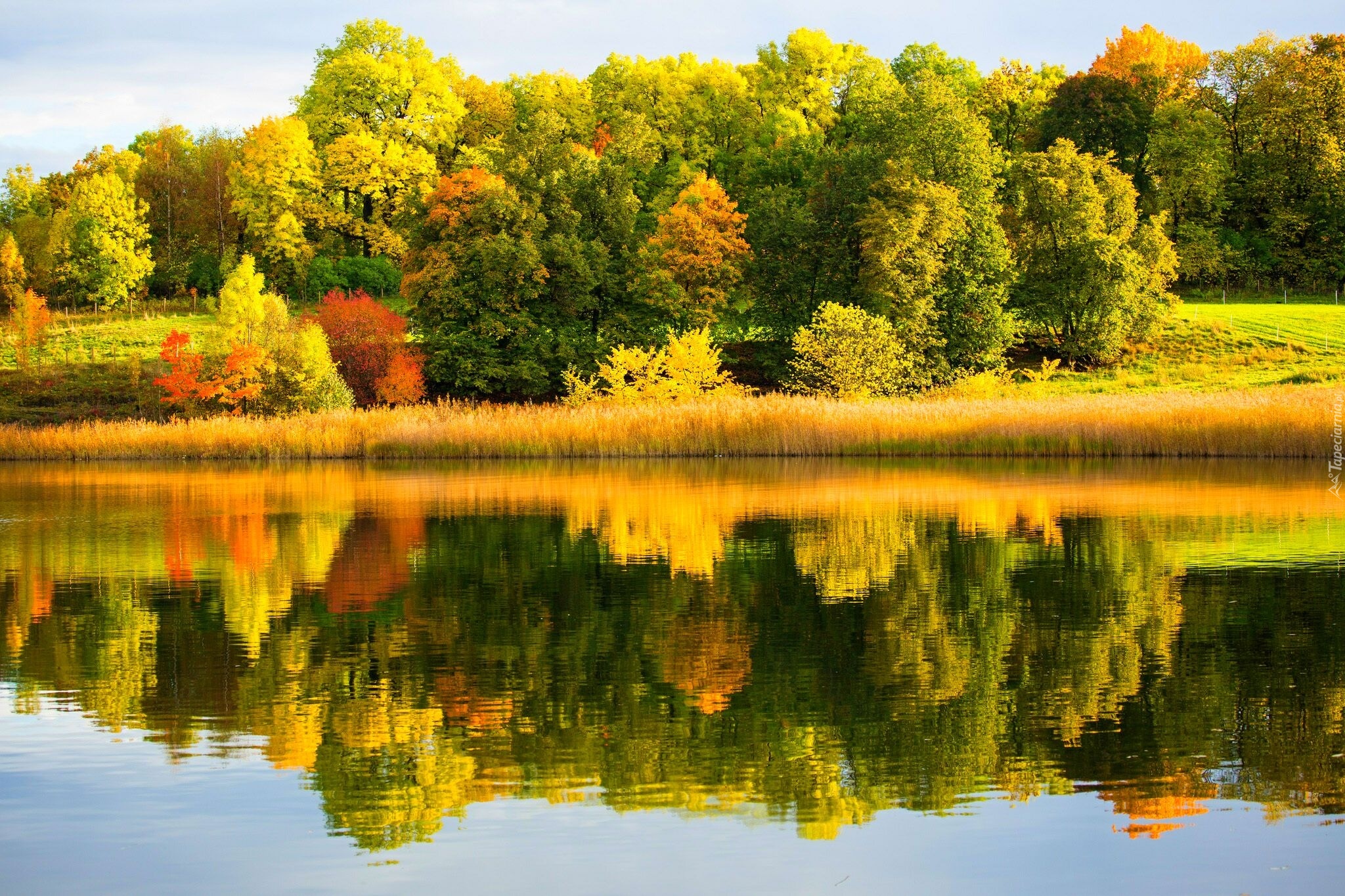 Edytor tapety: Jesień, Drzewa, Rzeka