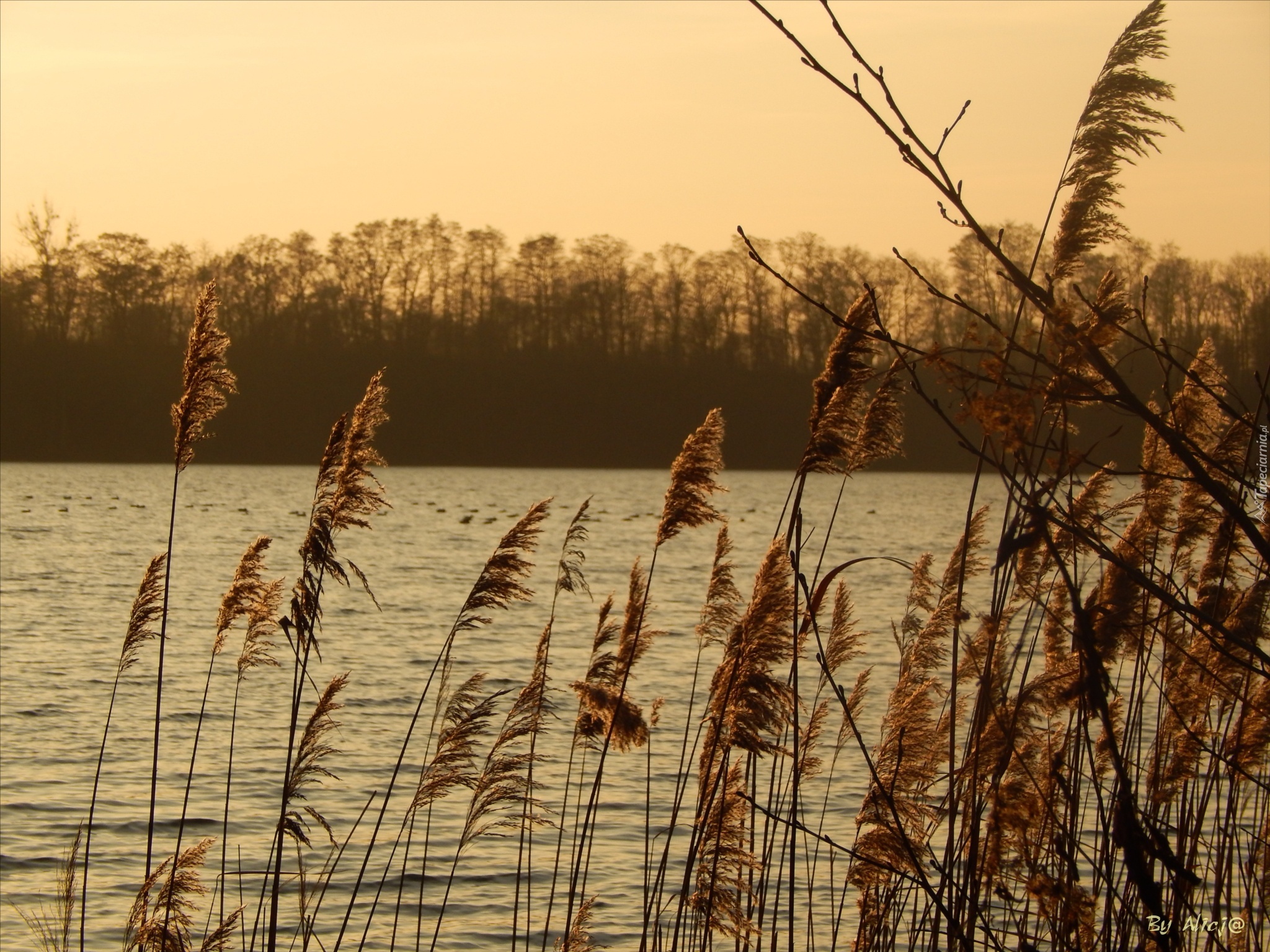 Edytor tapety: Jezioro, Trzcina, Zachód, Słońca