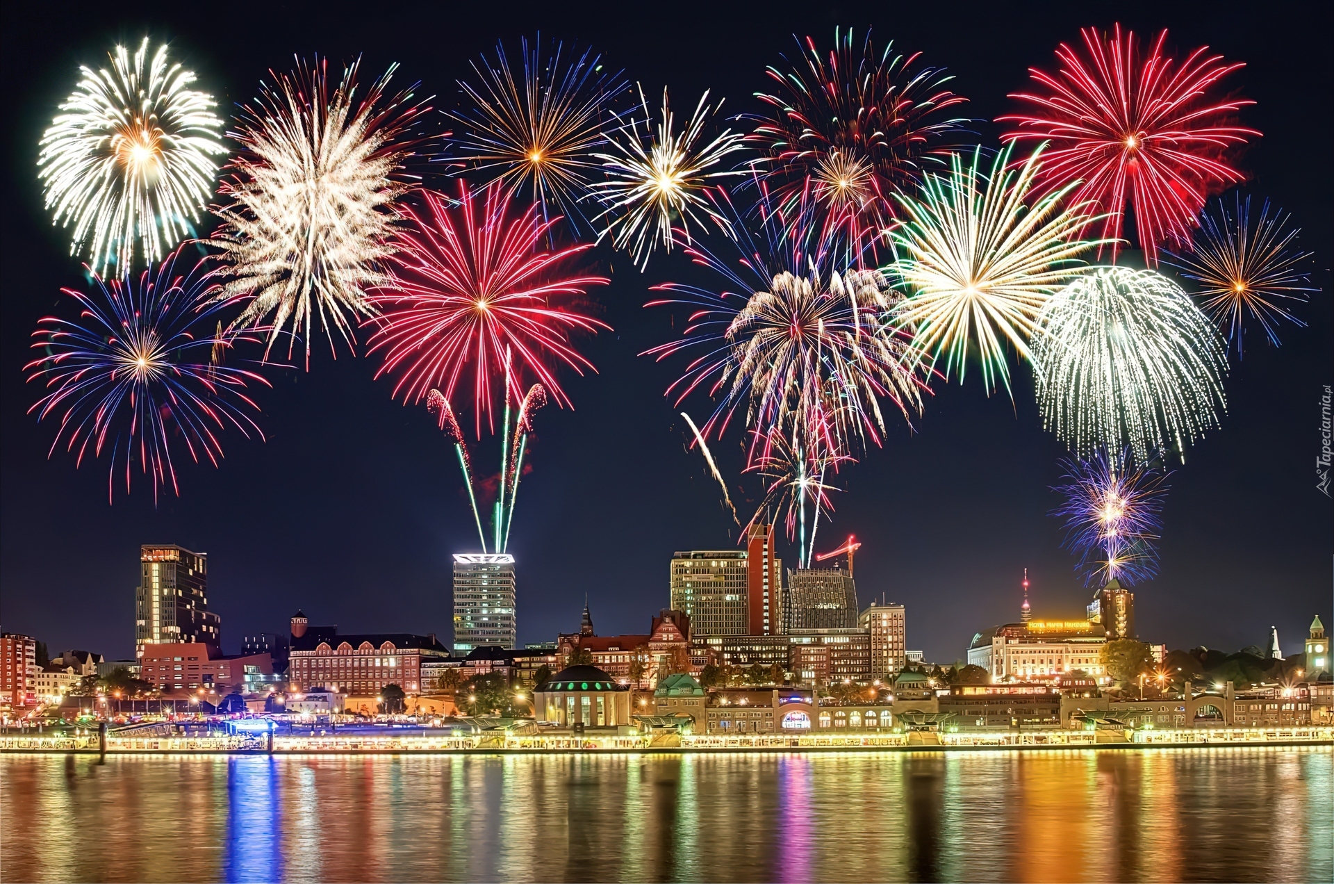 Edytor tapety: Sylwester, Miasto, Noc, Fajerwerki