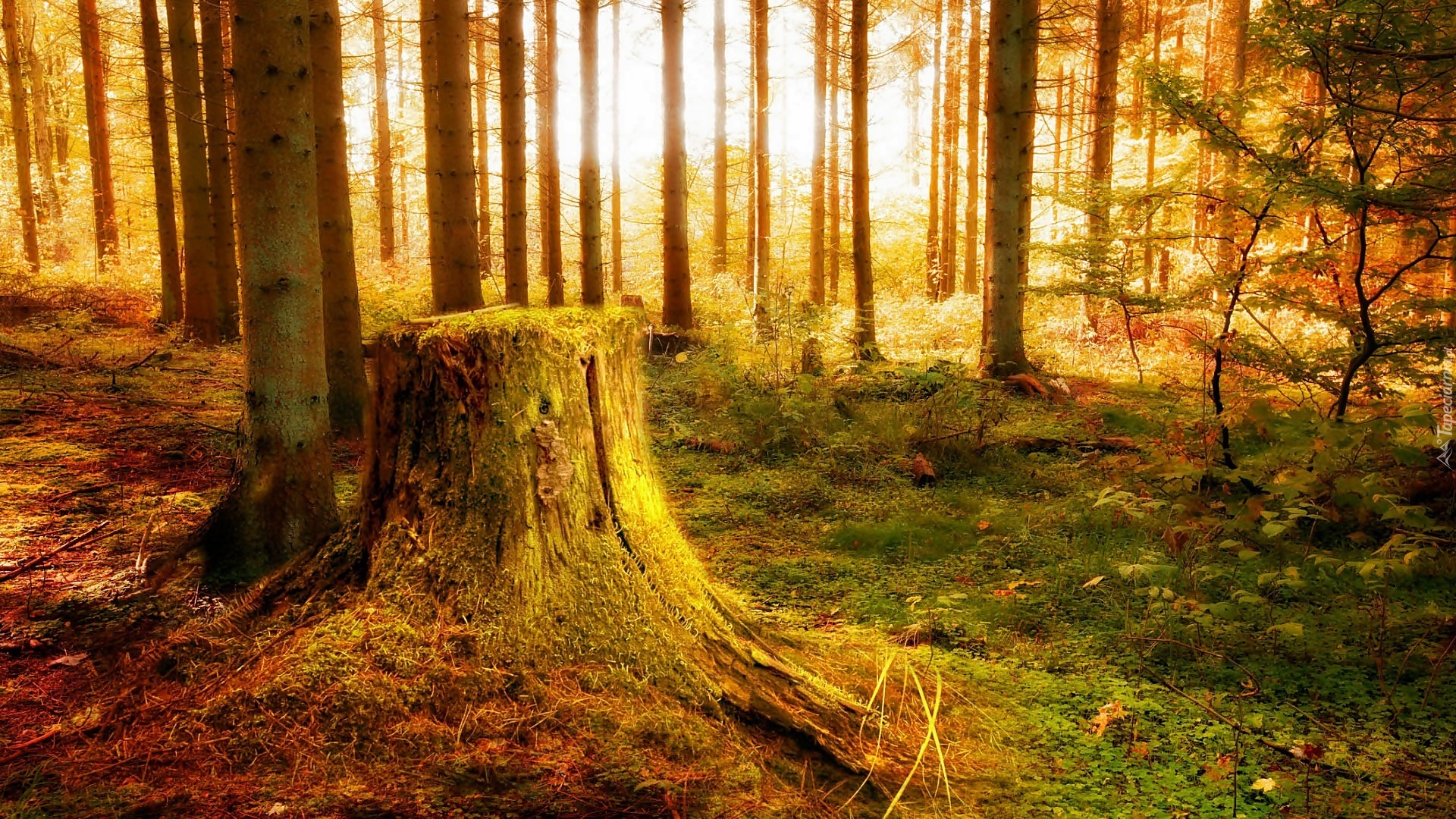 Edytor tapety: Jesień, Las, Omszały, Pniak