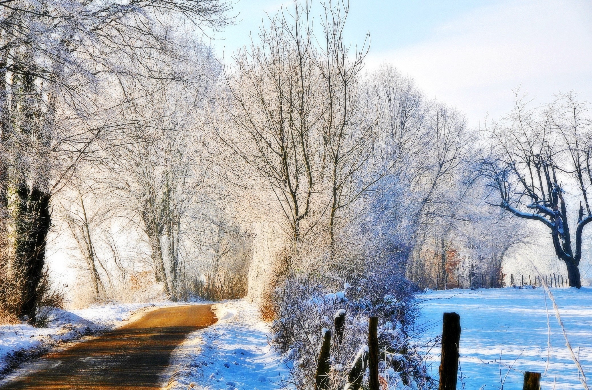 Edytor tapety: Droga, Śnieg, Drzewa