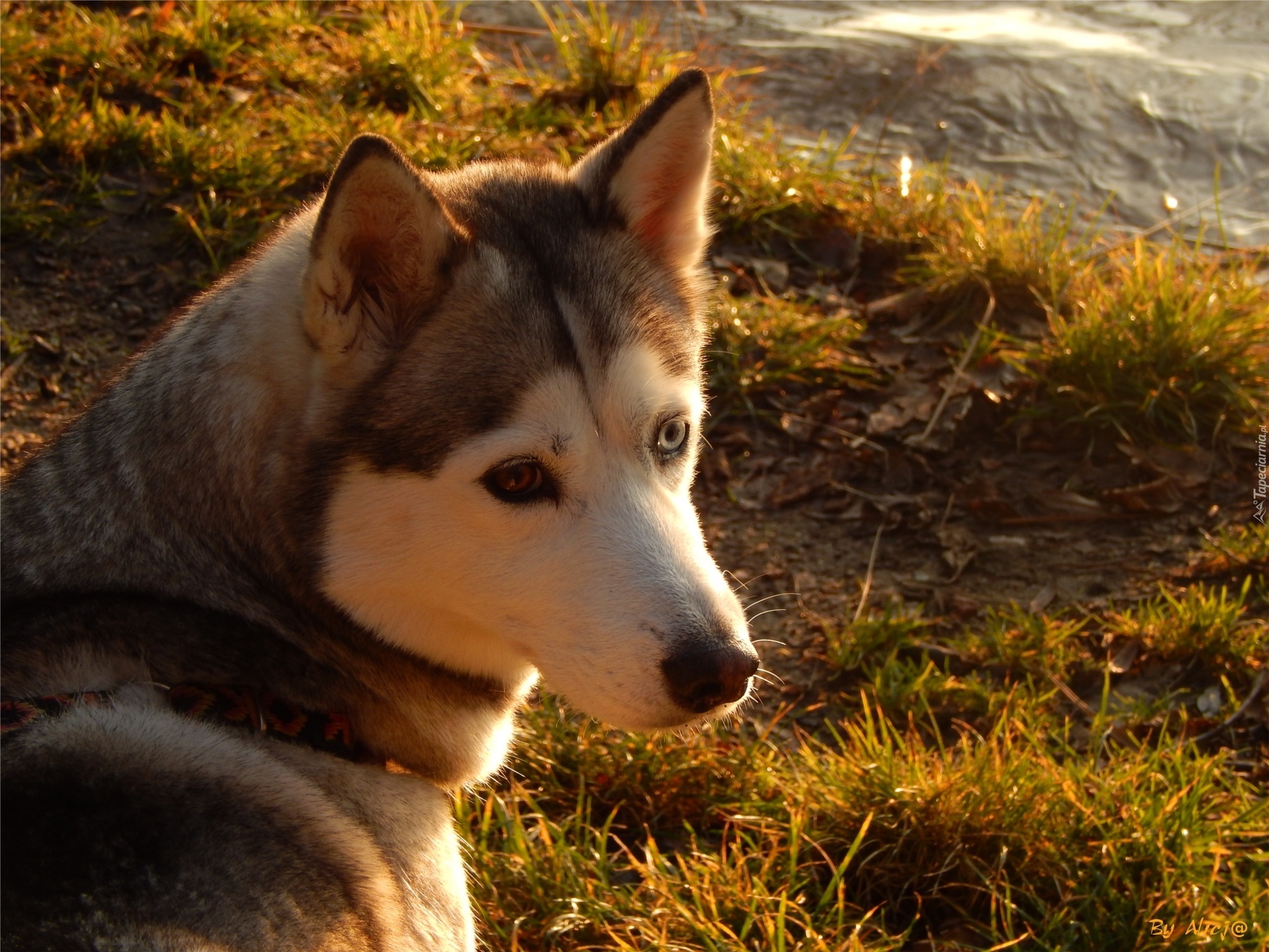 Edytor tapety: Husky, Spojrzenie, Trawa