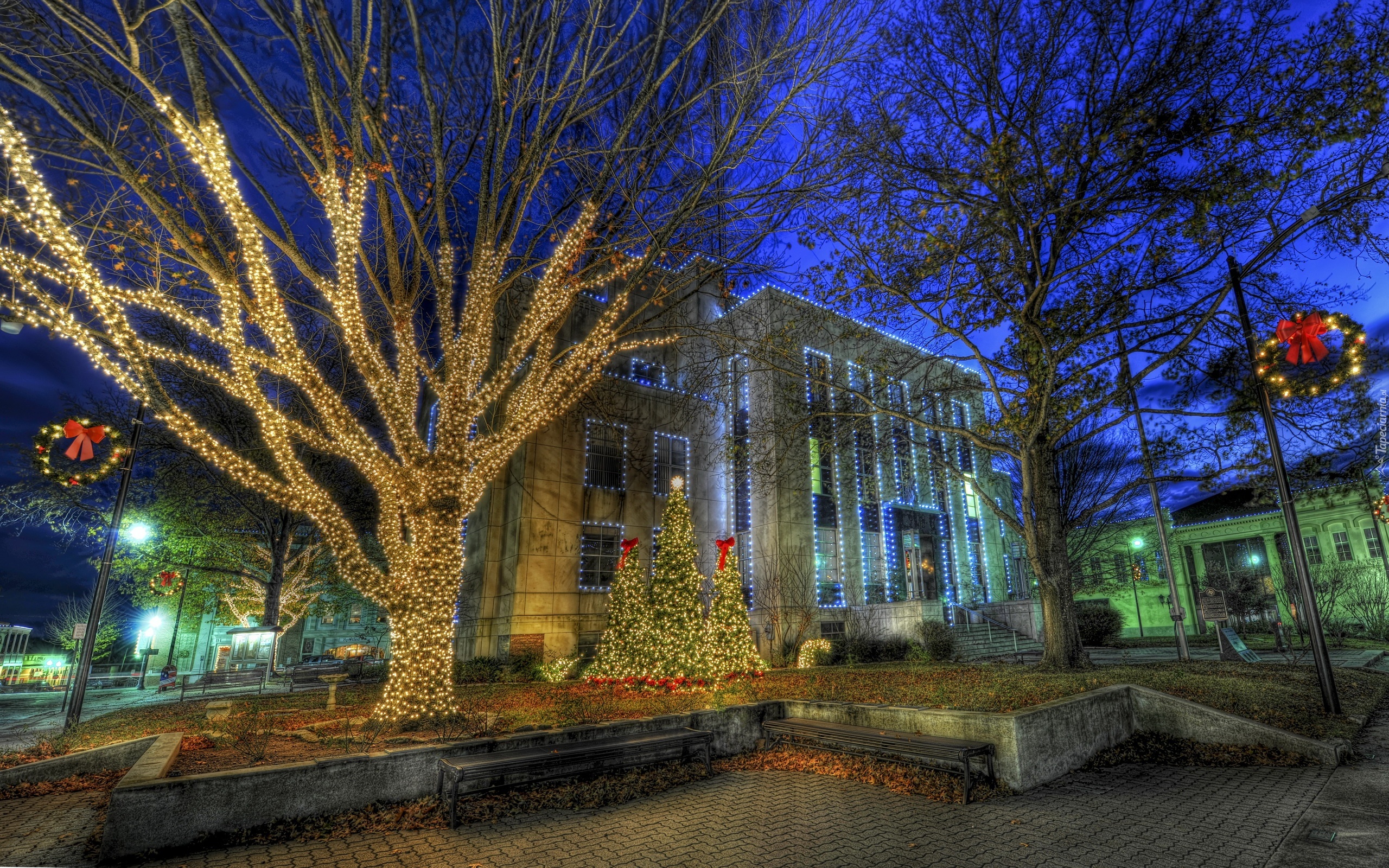 Edytor tapety: Dom, Drzewa, Choinka