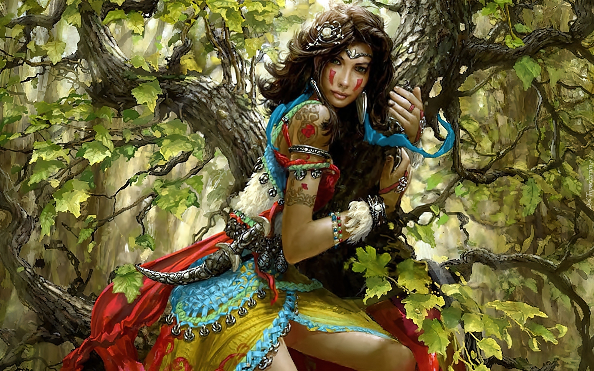 Edytor tapety: Kobieta, Wojowniczka, Drzewo