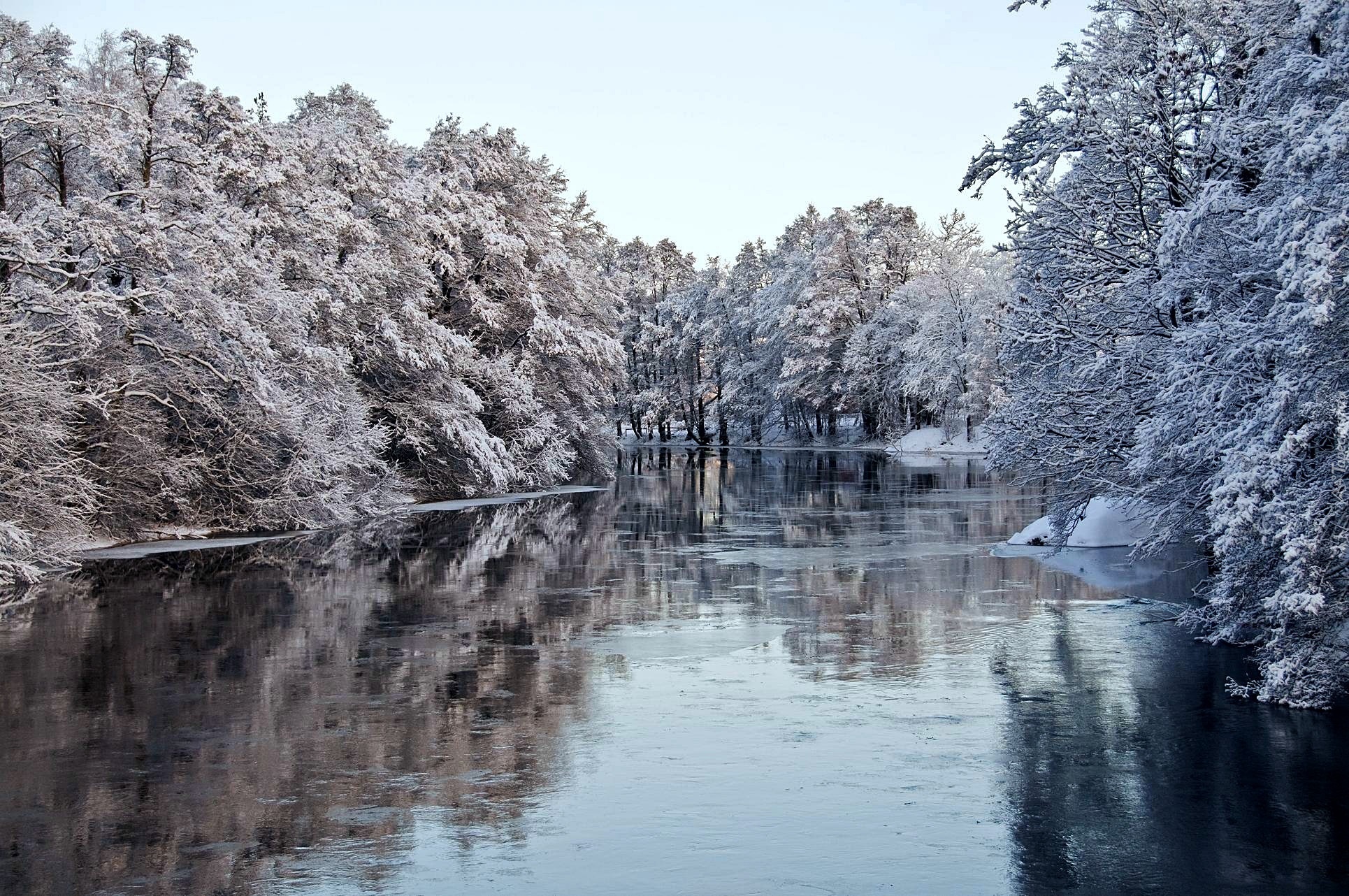 Edytor tapety: Zima, Rzeka, Oszronione, Drzewa