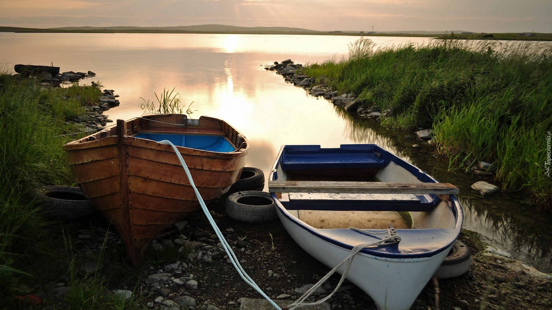 Edytor tapety: Jezioro, Brzeg, Łódki