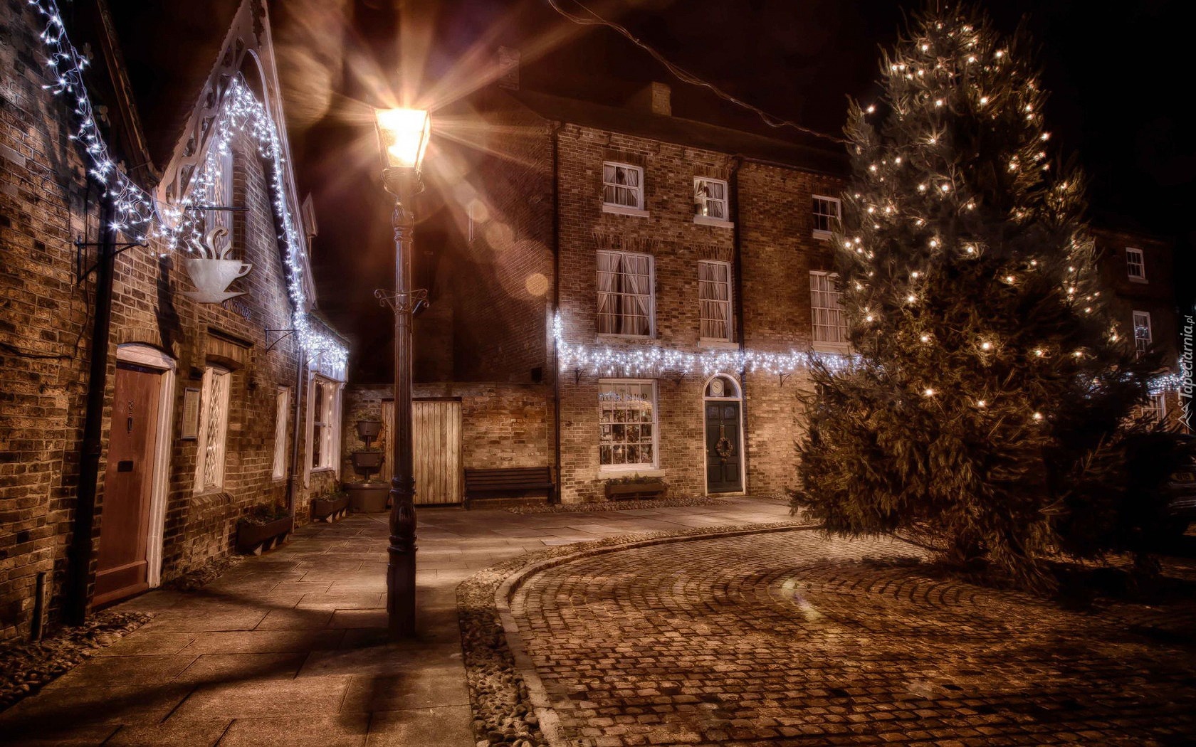 Edytor tapety: Ulica, Droga, Latarnia, Domy, Choinka