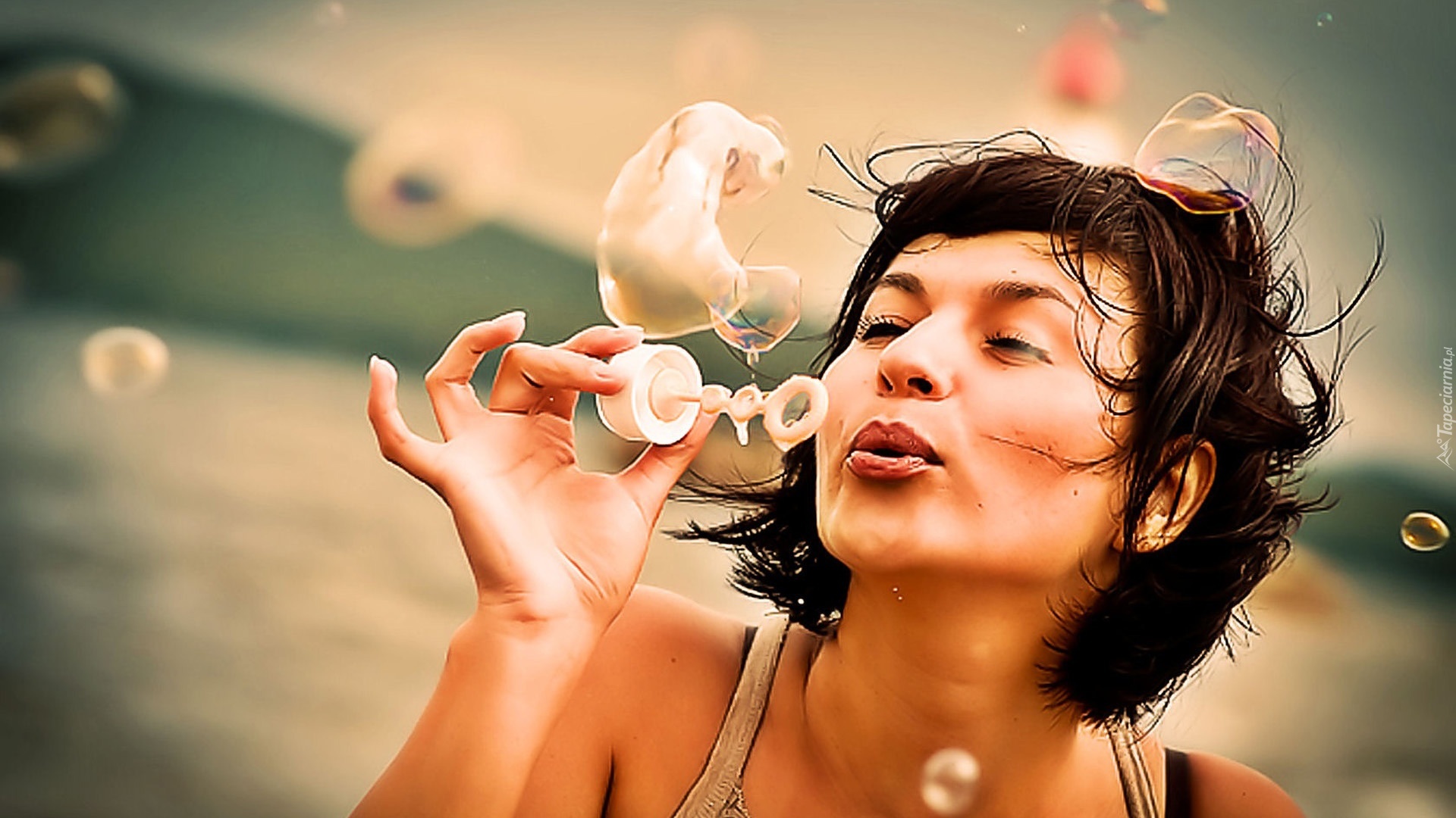 Edytor tapety: Kobieta, Puszczanie, Baniek, Mydlanych