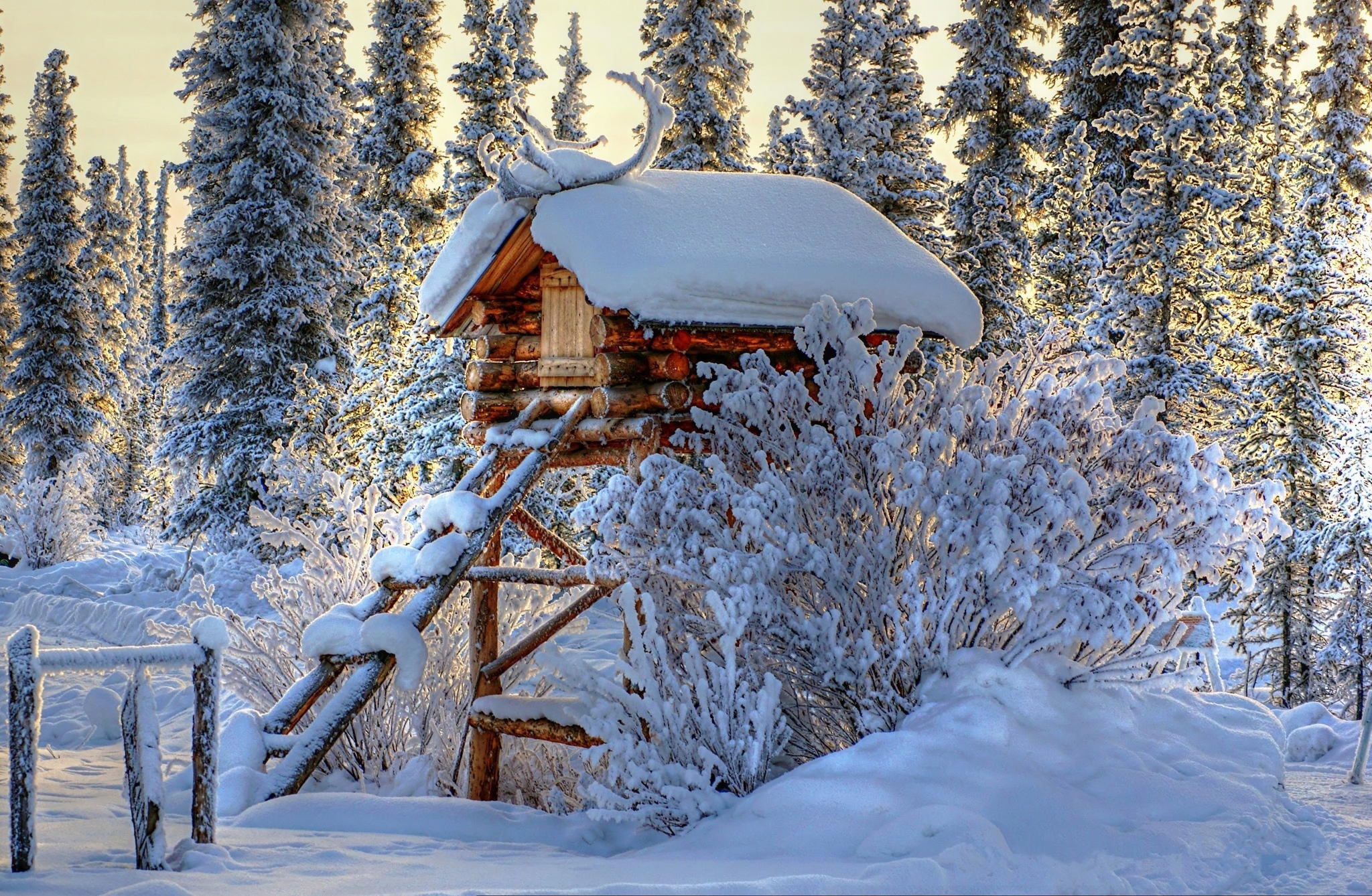 Edytor tapety: Śnieg, Las, Szopa, Drabina