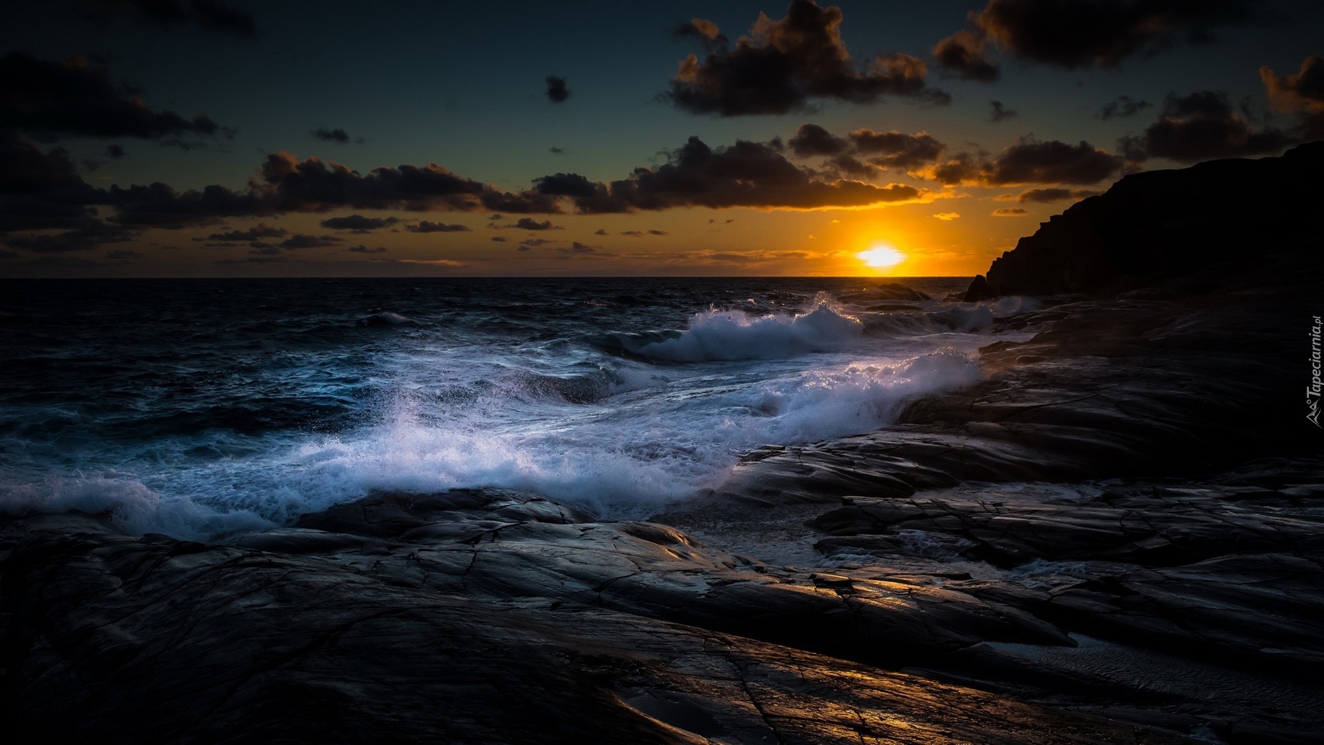 Edytor tapety: Morze, Skały, Fale, Zachód, Słońca