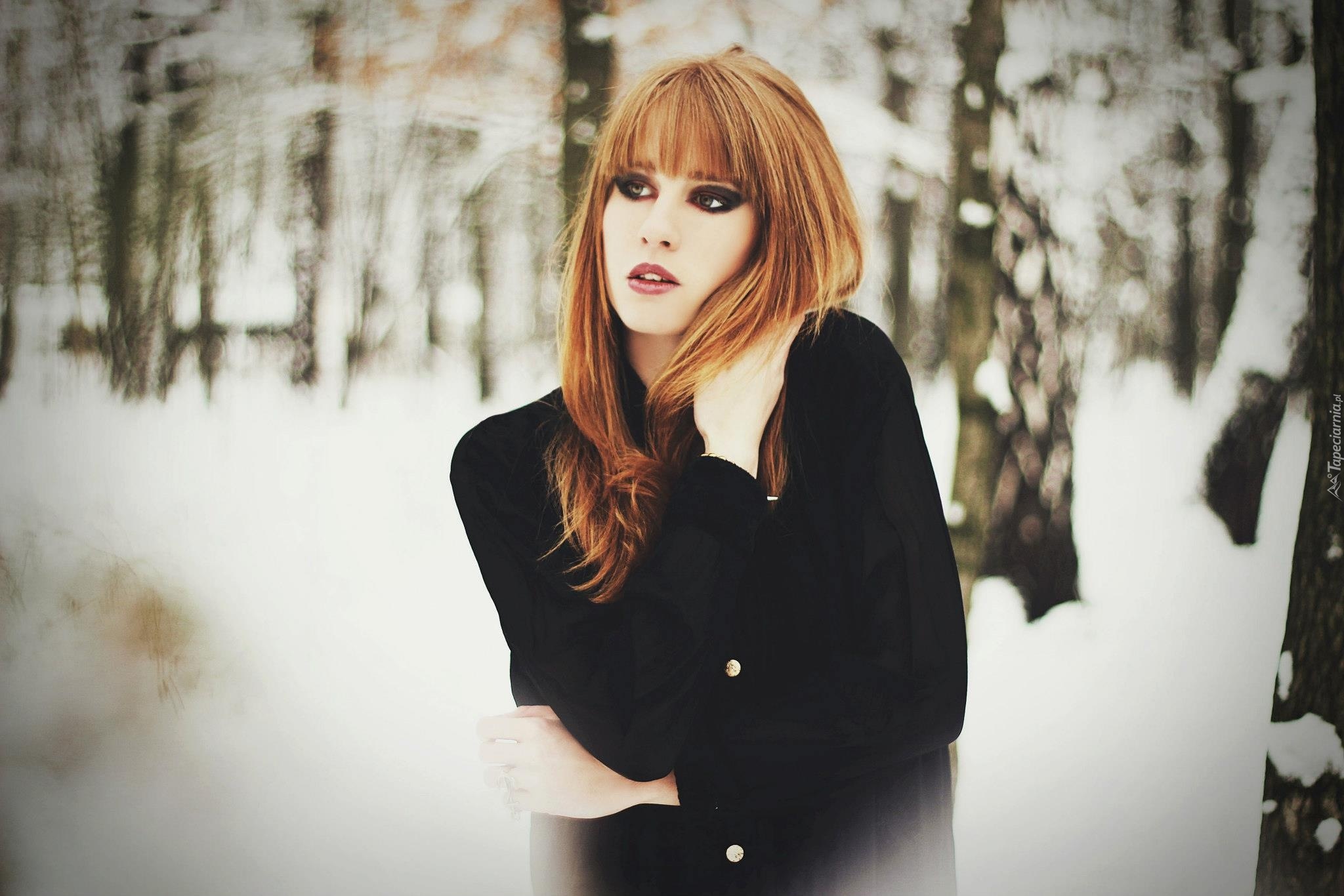 Edytor tapety: Kobieta, Ruda, Makijaż, Zima