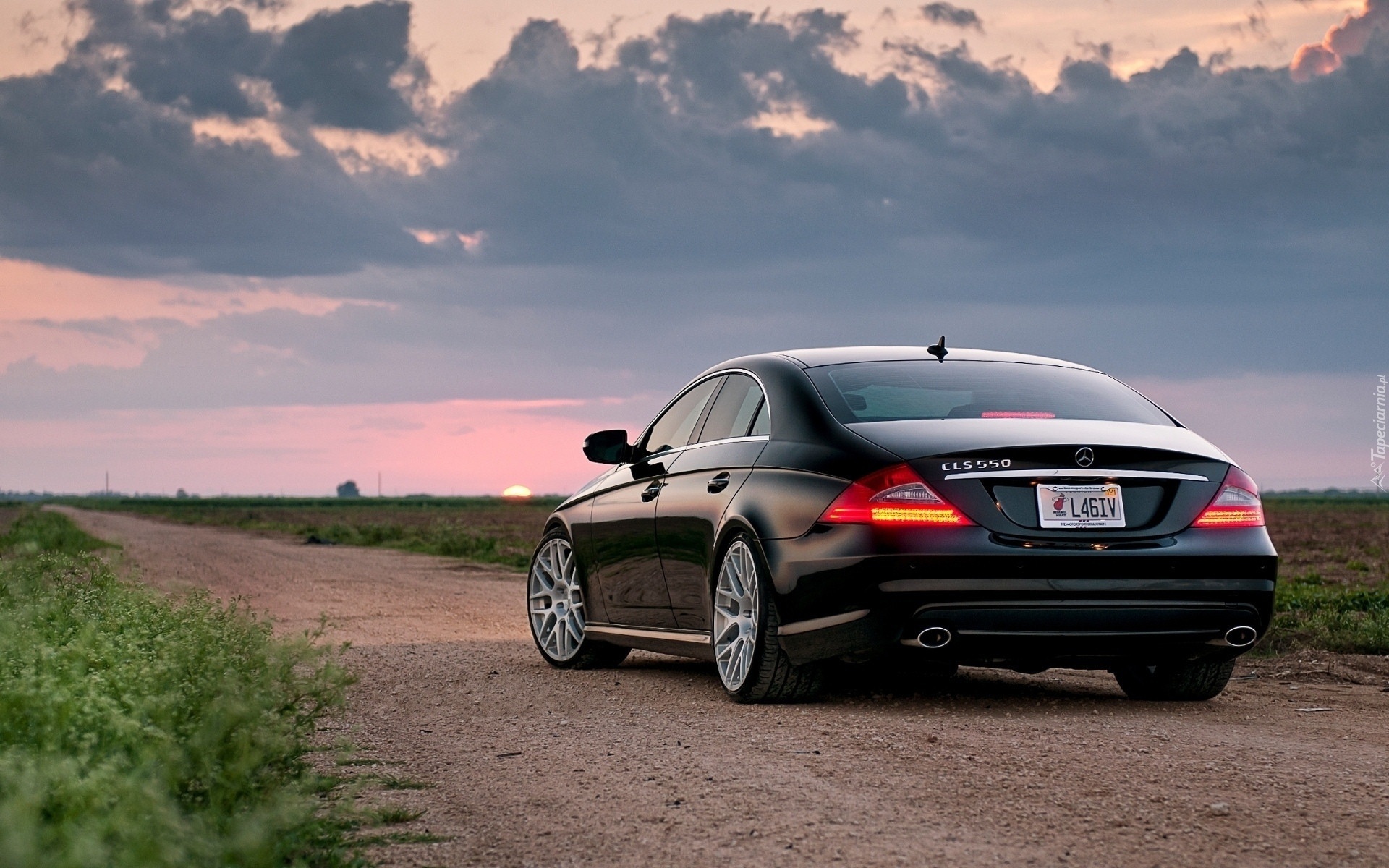 Edytor tapety: Mercedes, CLS550, Droga, Pola, Zachód, Słońca