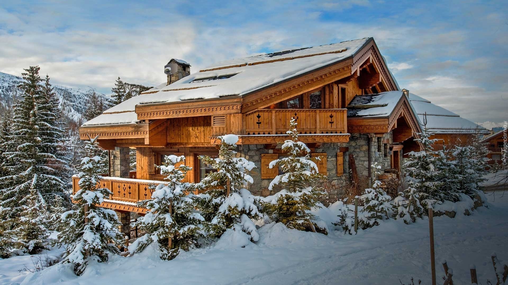 Edytor tapety: Drewniany, Dom, Drzewa, Zima