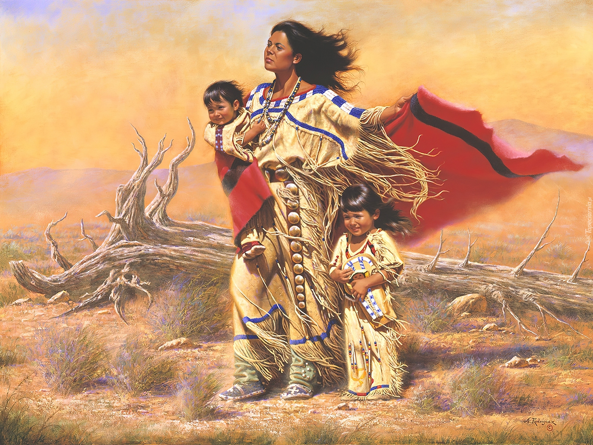 Edytor tapety: Obraz, Alfredo Rodriguez, Indianka, Dzieci