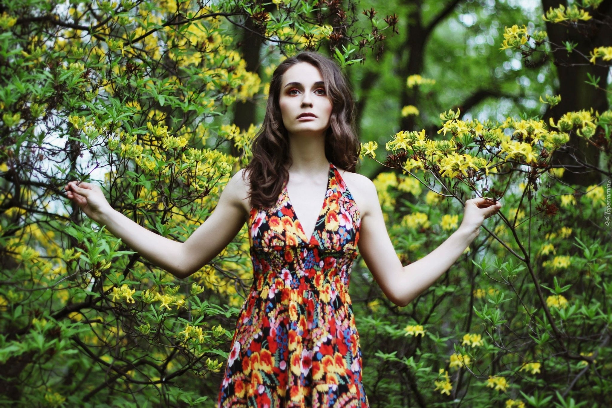 Edytor tapety: Kobieta, Brunetka, Makijaż, Las