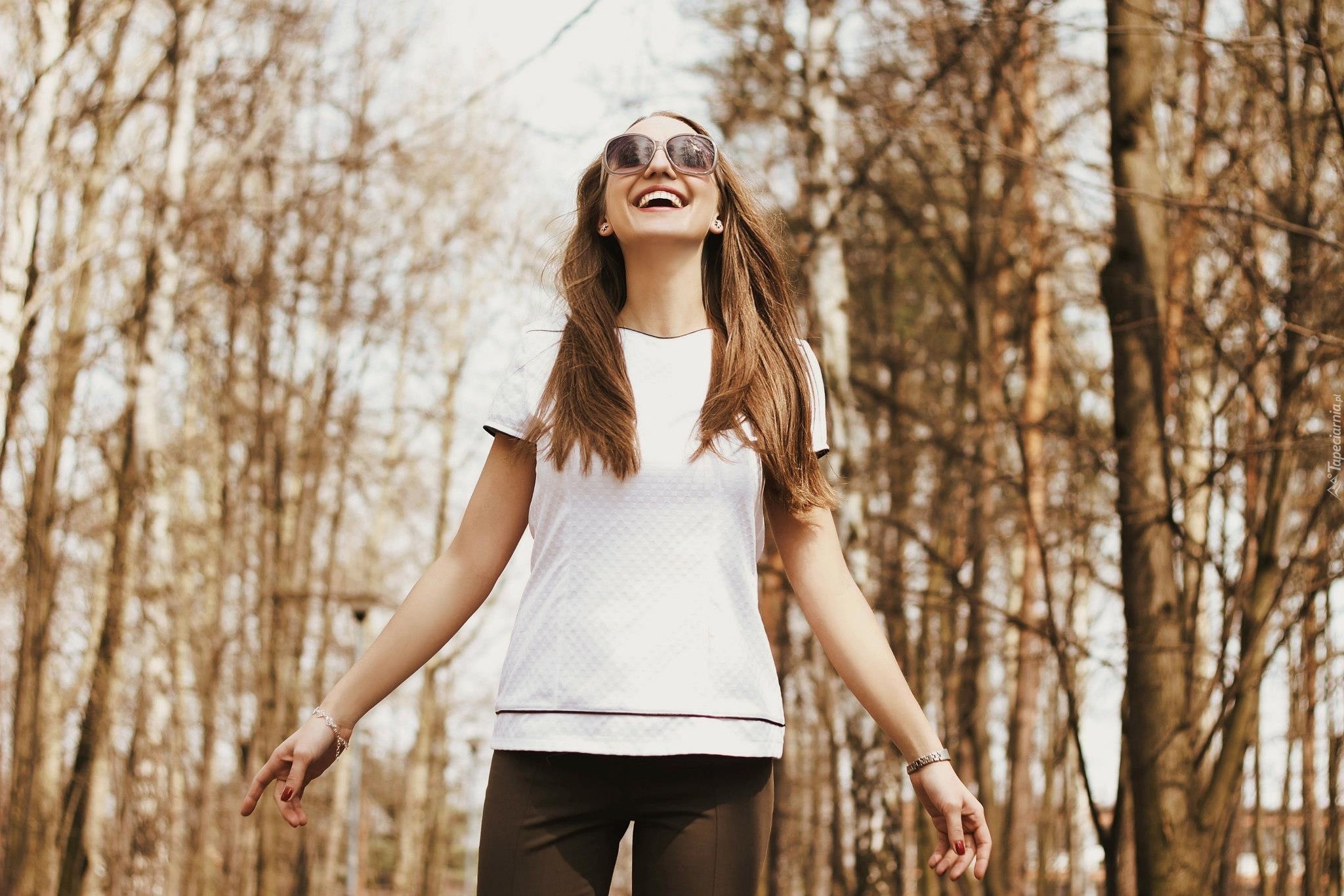 Edytor tapety: Uśmiechnięta ,Kobieta, Szatynka, Okulary, Las