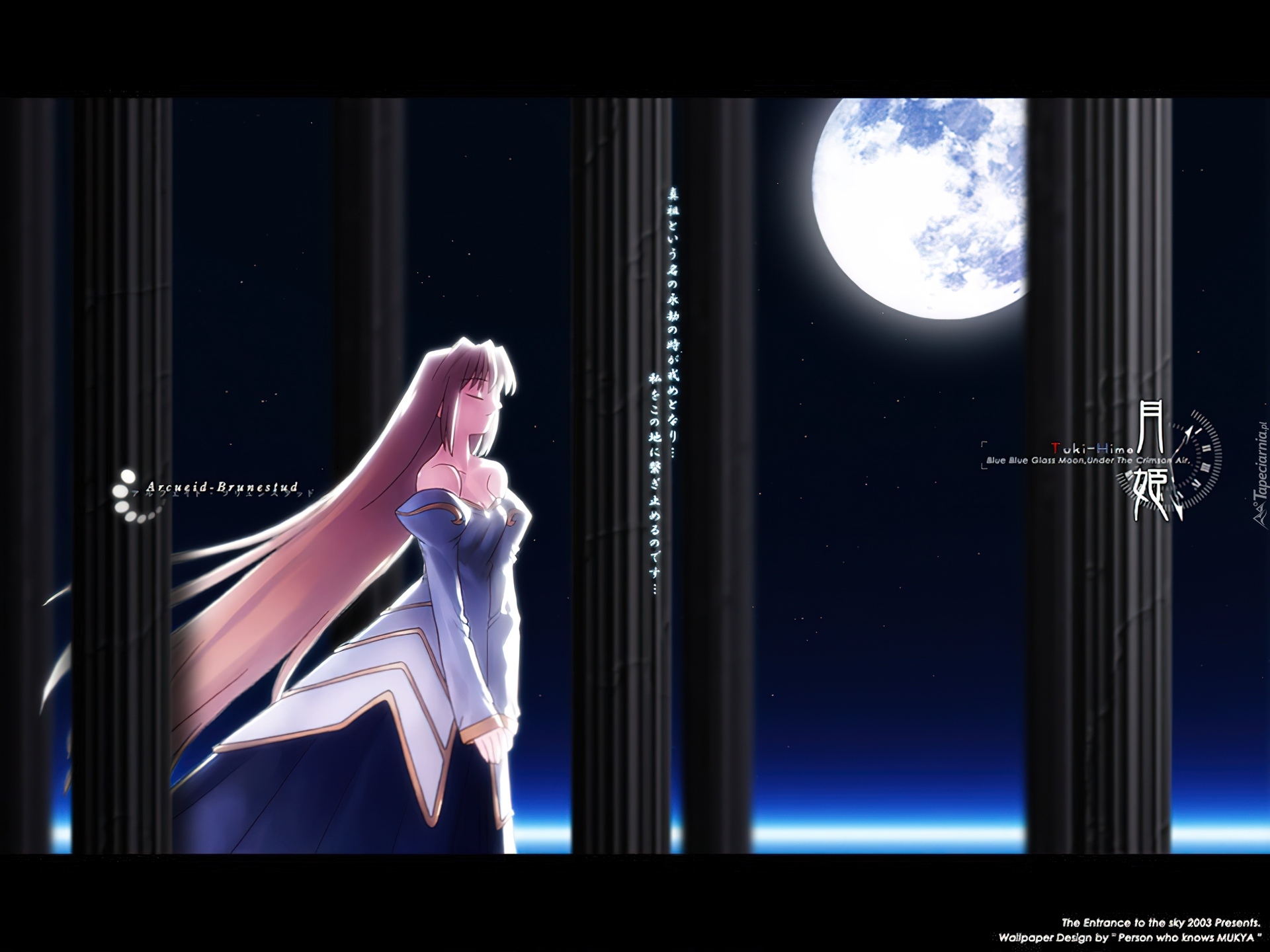 Edytor tapety: Shingetsutan Tsukihime, długowłosa, księżyc