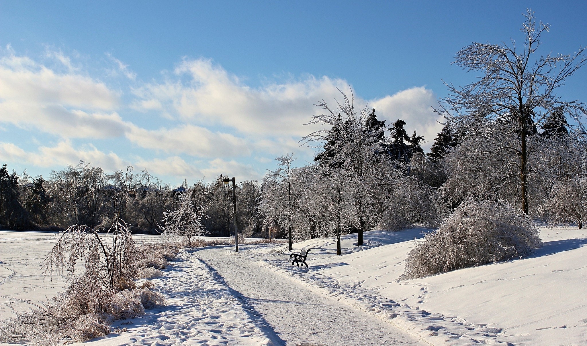 Edytor tapety: Zima, Park, Ławeczka