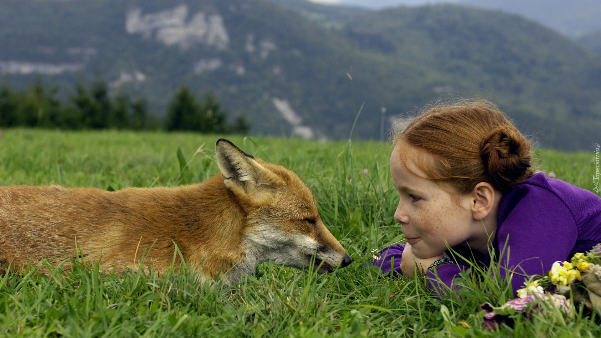 Edytor tapety: Dziewczynka, Lisek, Trawa