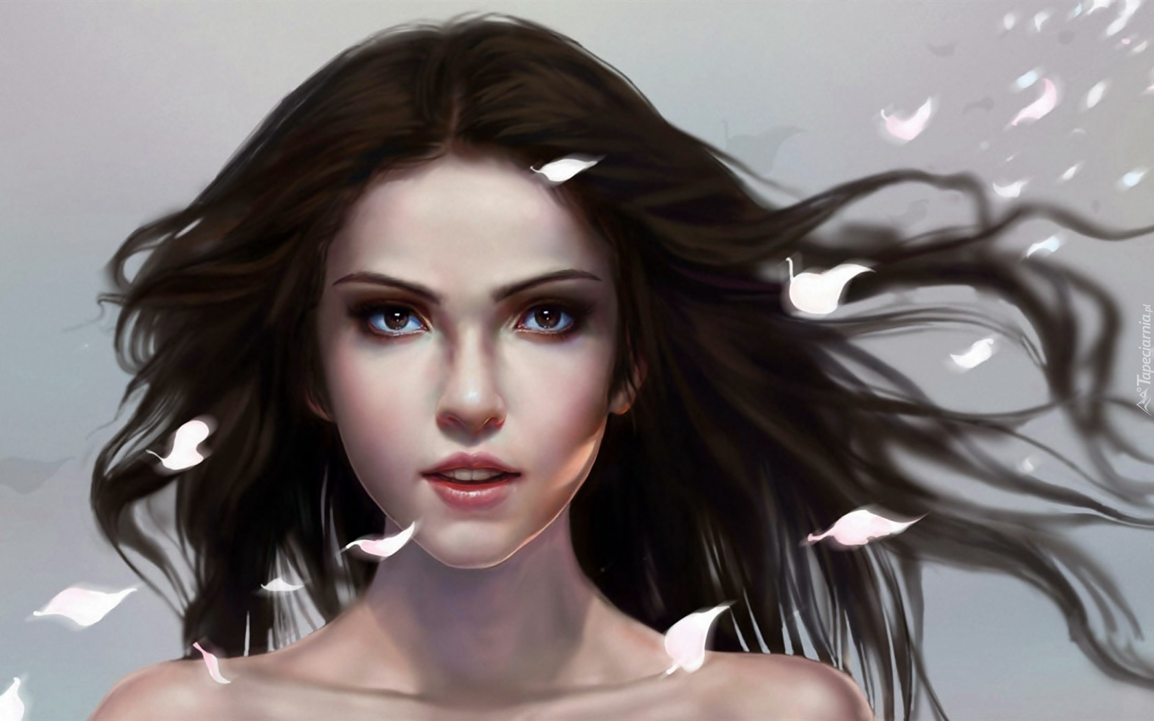 Edytor tapety: Kobieta, Rozwiane, Włosy, Listki, Grafika, 3D