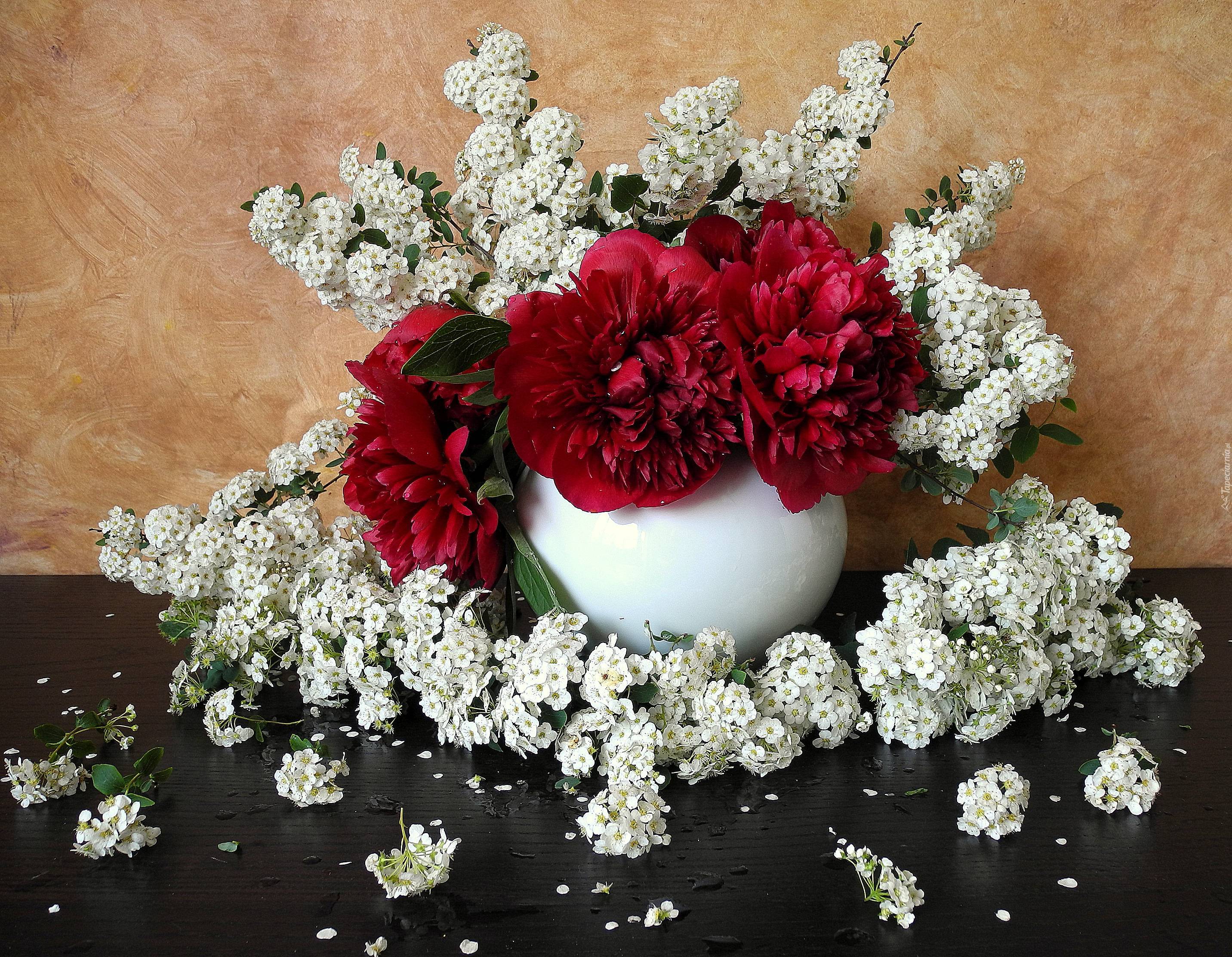 Edytor tapety: Kompozycja, Piwonie, Białe, Kwiatuszki