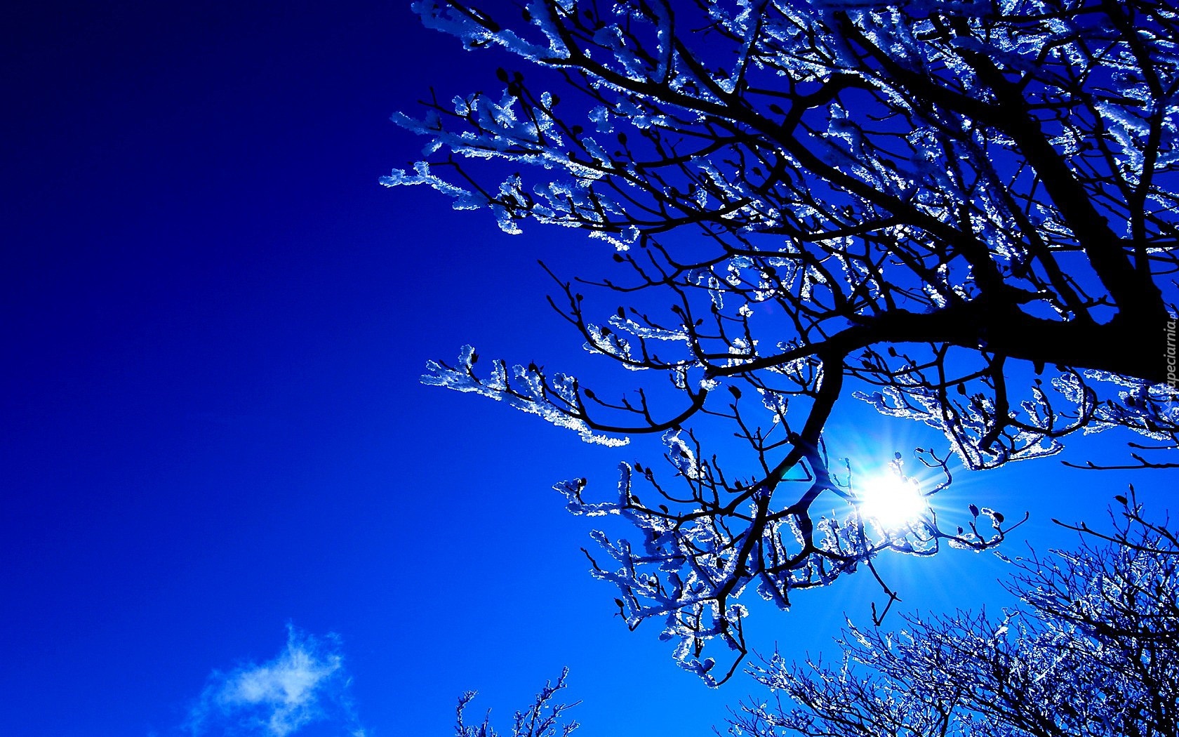 Edytor tapety: Drzewo, Oszronione, Promienie, Słońca, Niebo