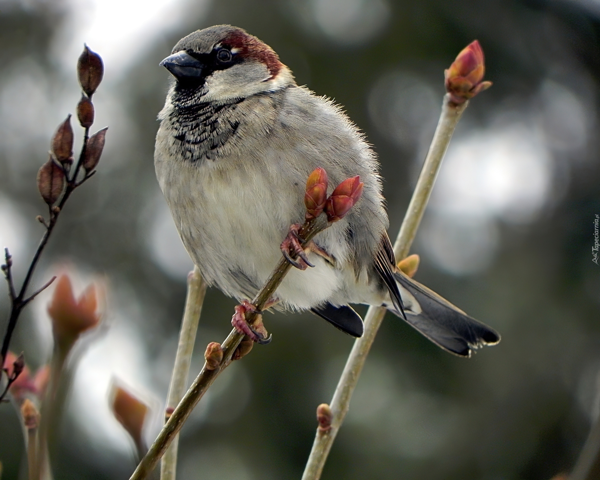 Edytor tapety: Wróbel, Gałązki, Pączki