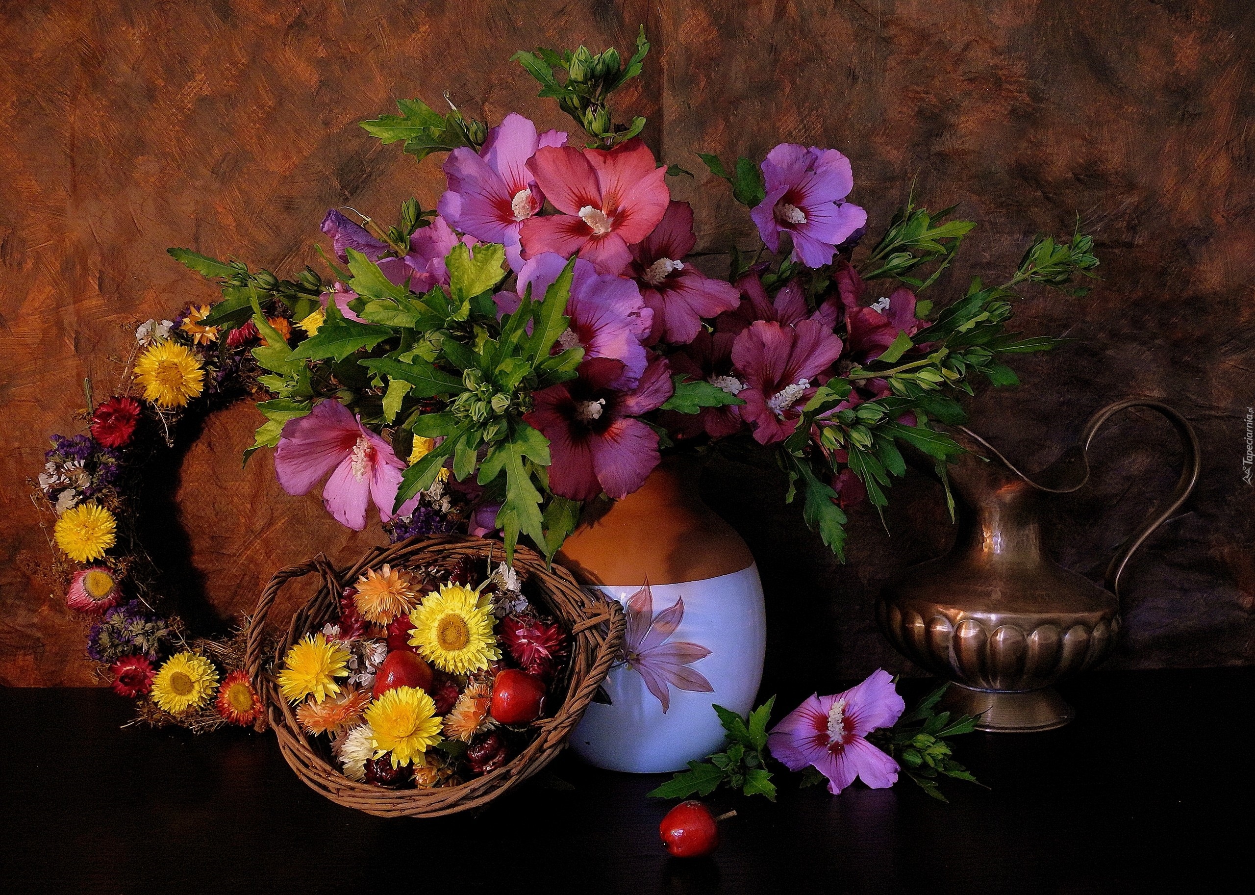 Edytor tapety: Bukiet, Anemony, Wianek, Kosz