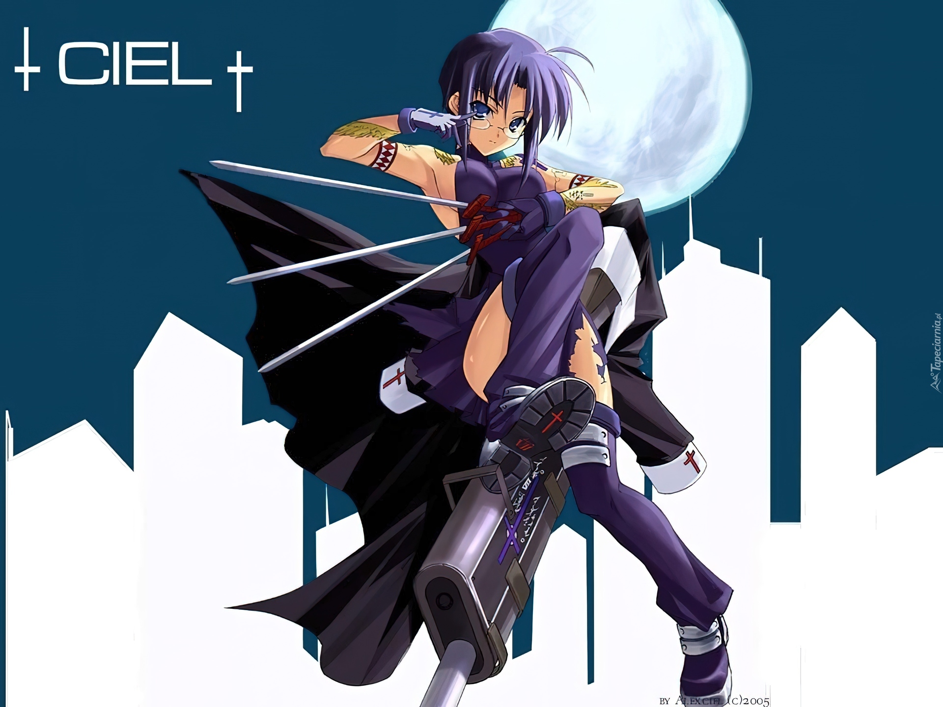 Edytor tapety: Shingetsutan Tsukihime, księżyc, miecze