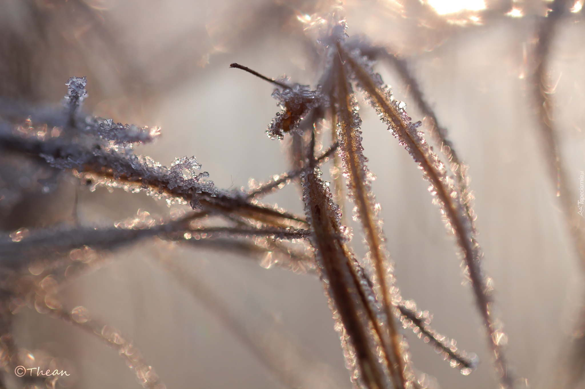 Edytor tapety: Zmarznięte, Źdźbła, Rośliny, Kryształki, Lodu