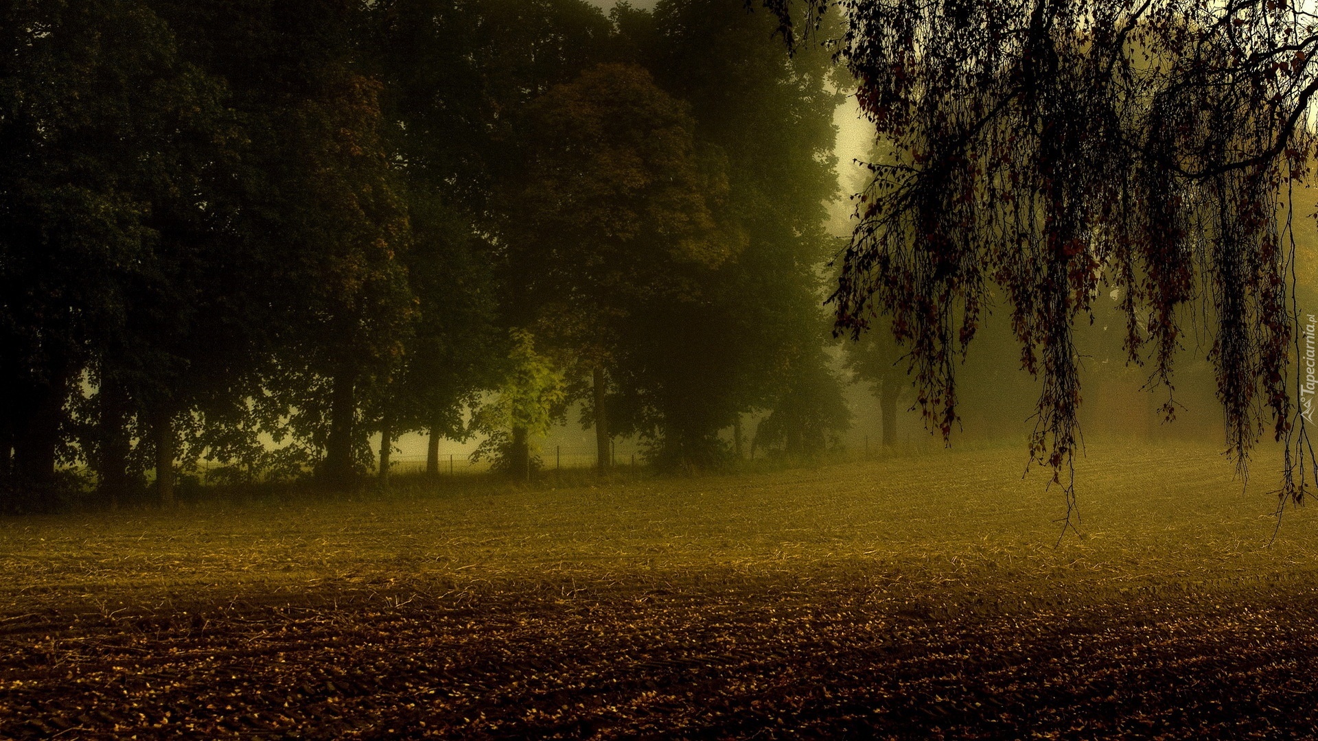 Edytor tapety: Pola, Łąki, Mgła, Drzewa, Jesień