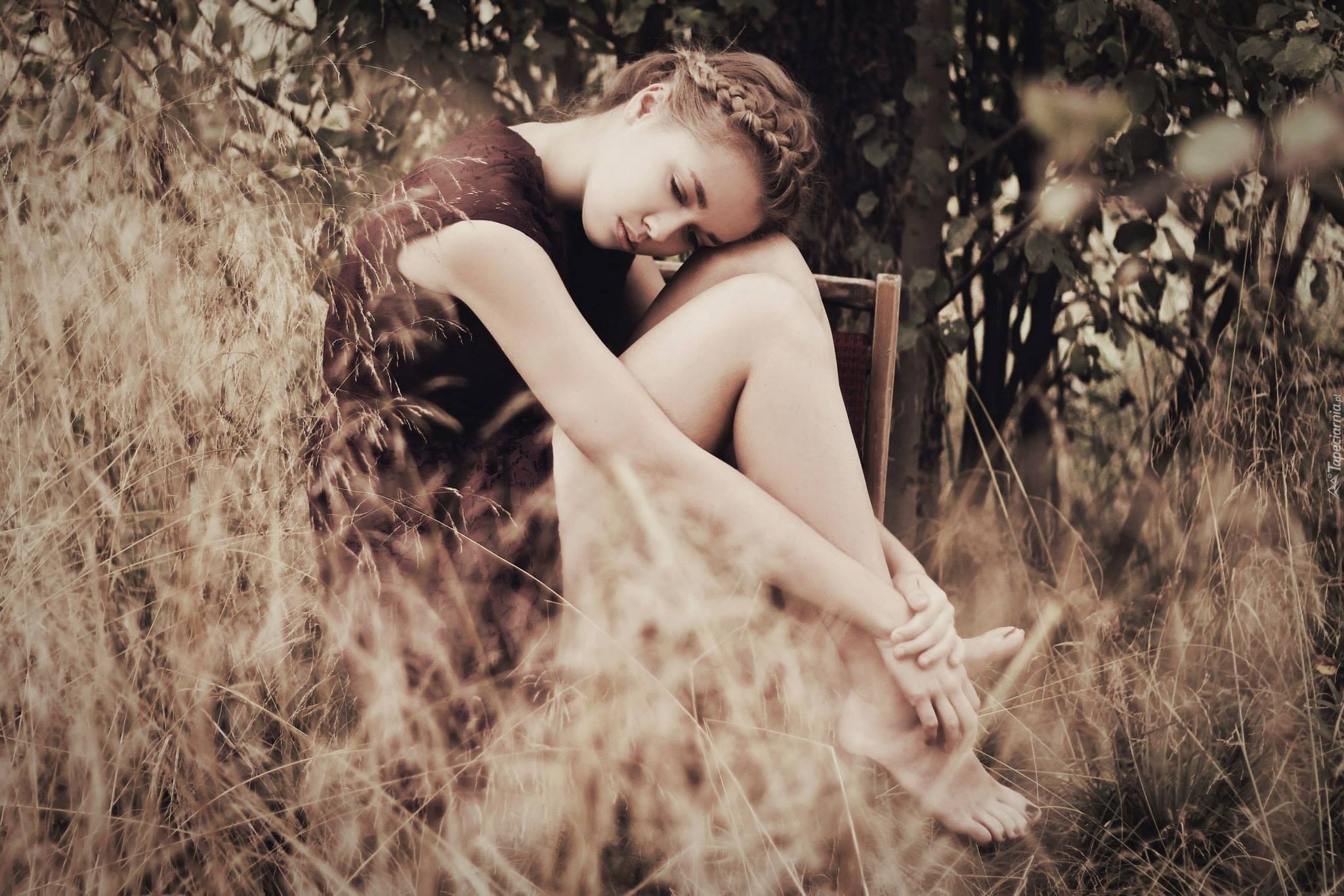 Edytor tapety: Zamyślona ,Kobieta, Zboże