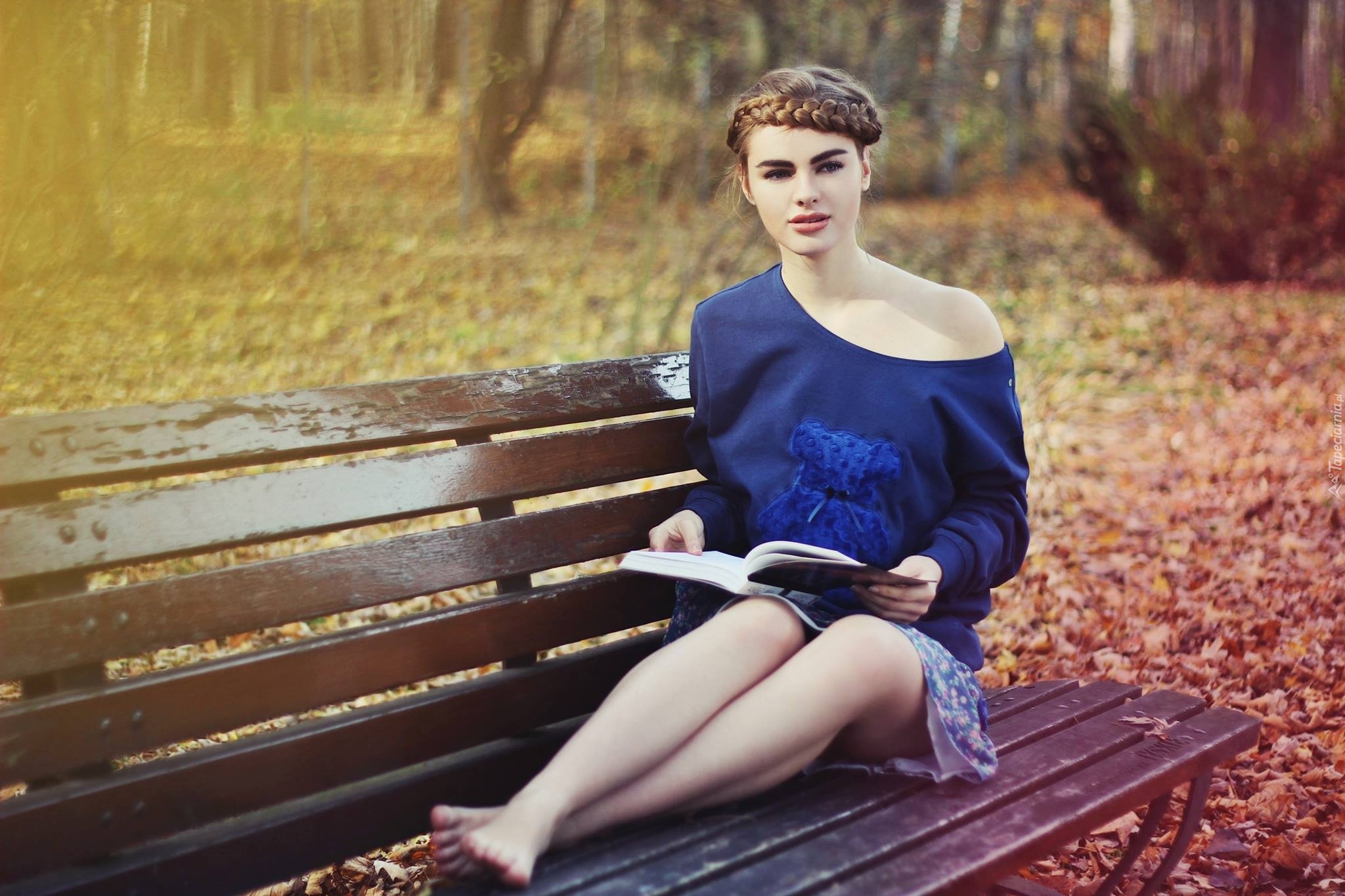 Edytor tapety: Kobieta, Szatynka, Książka, Ławka, Park
