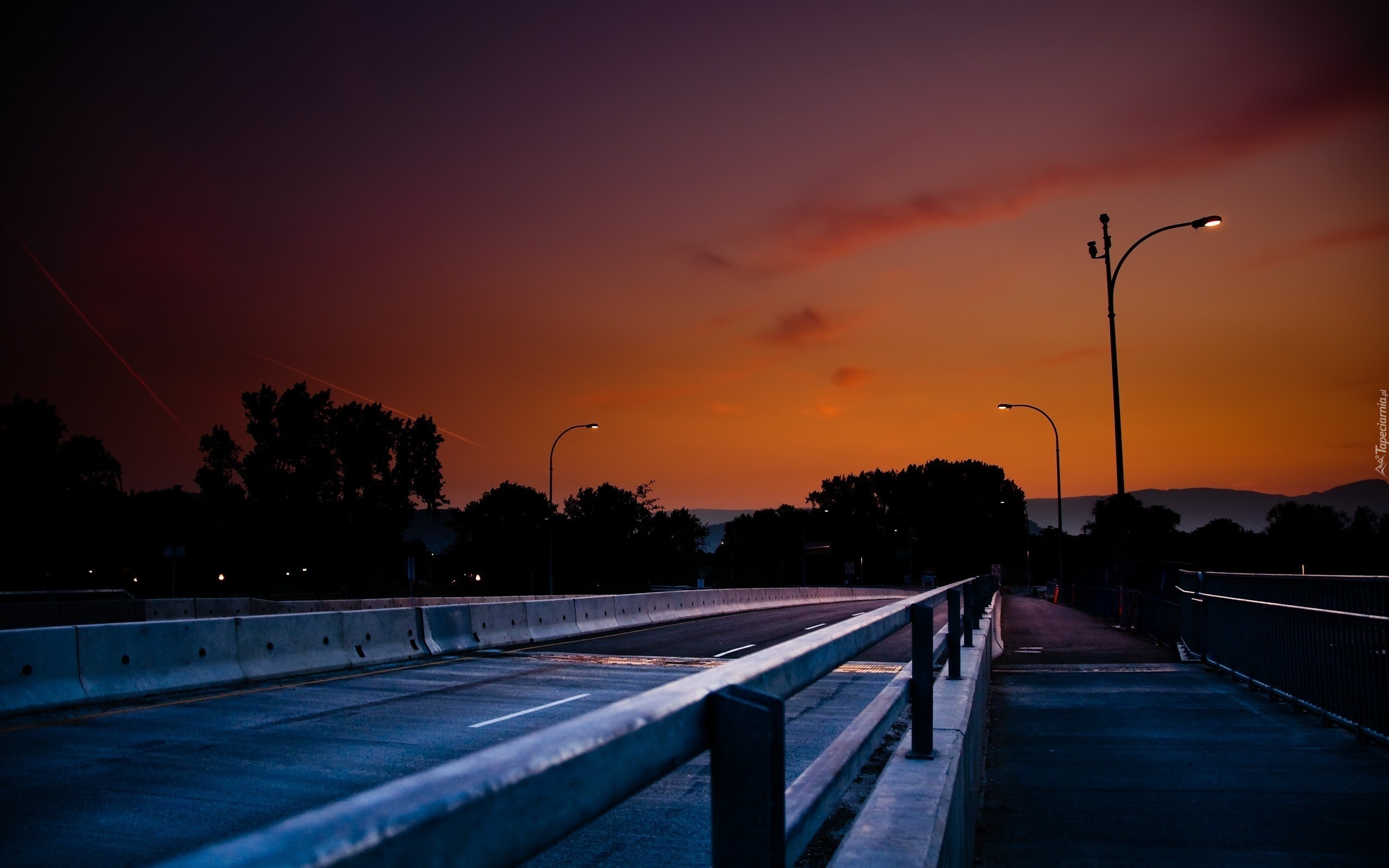 Edytor tapety: Noc, Droga, Barierki, Latarnie