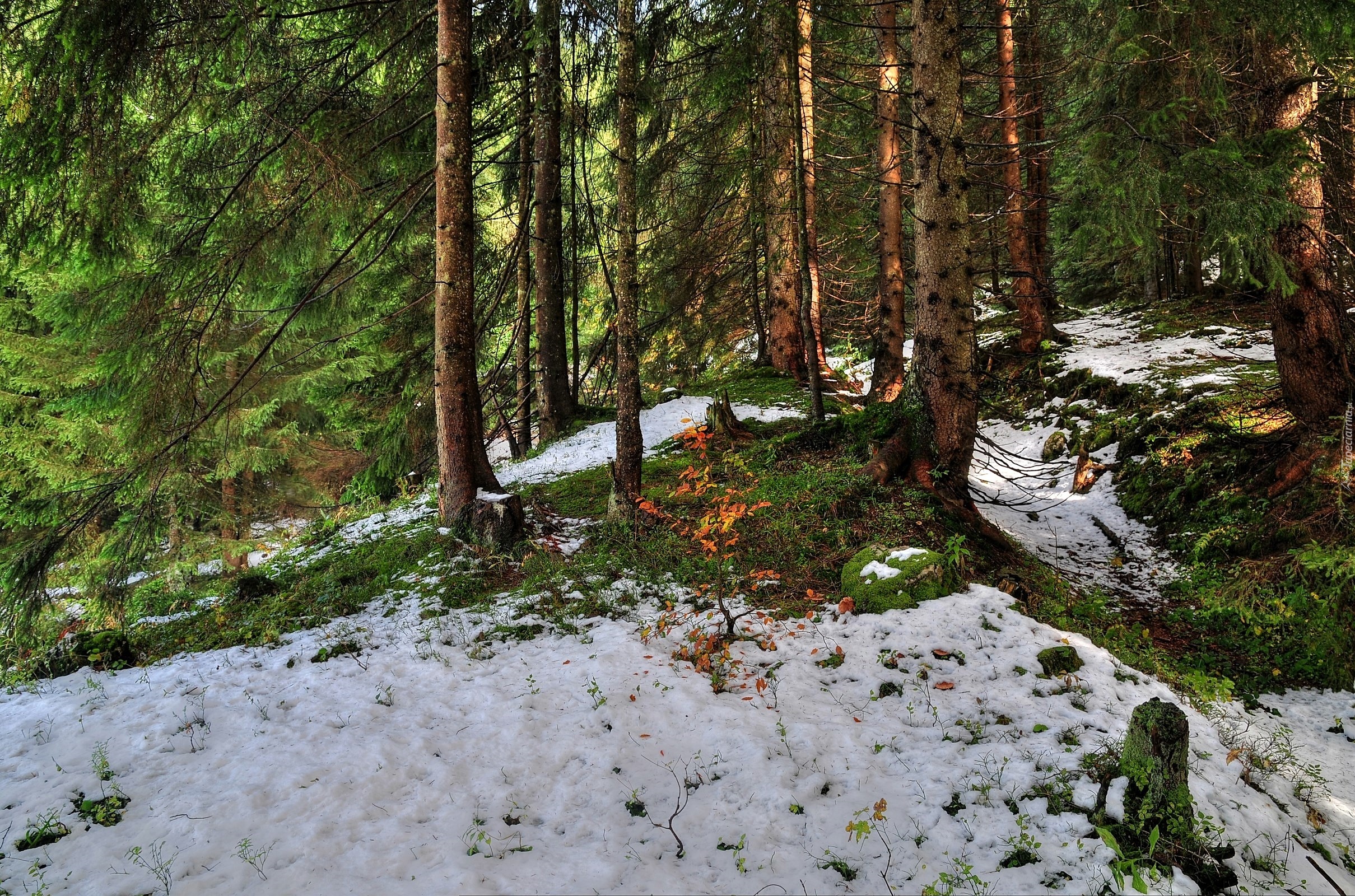 Edytor tapety: Las, Jesień, Pierwszy, Śnieg