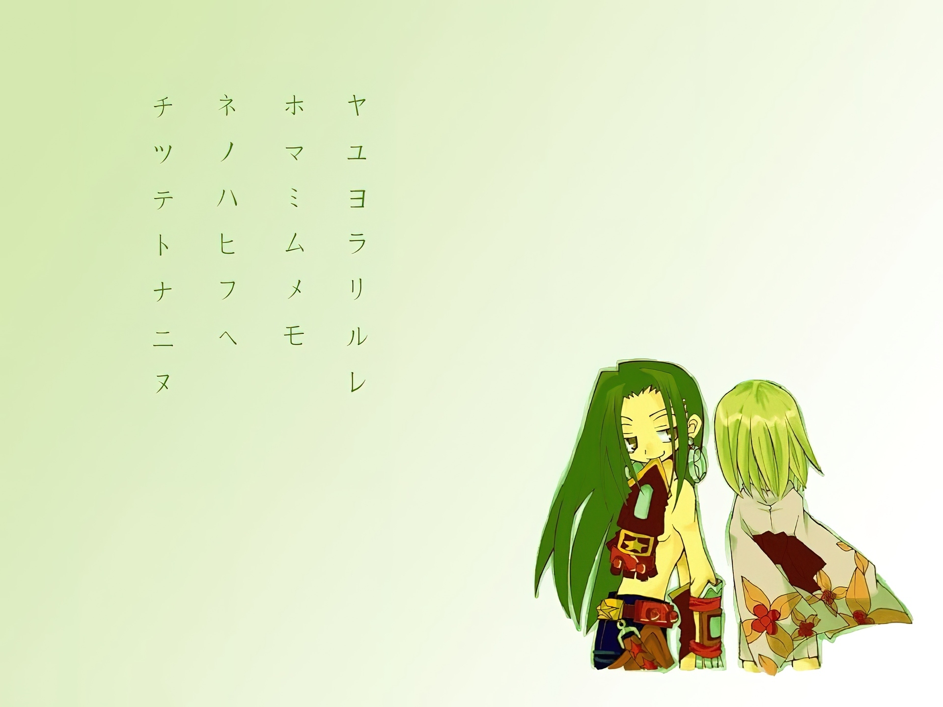 Edytor tapety: Shaman King, zielone włosy, chińskie litery