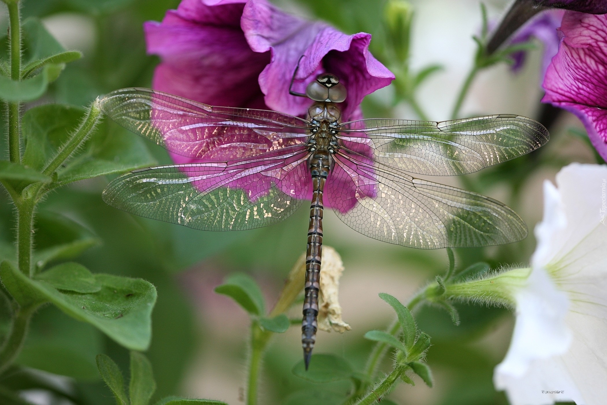Edytor tapety: Kwiaty, Surfinie, Ważka