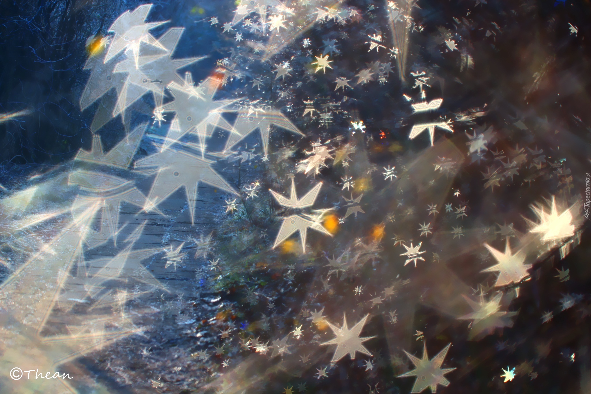 Edytor tapety: Przyroda, Gałązki, Gwiazdki, Bokeh