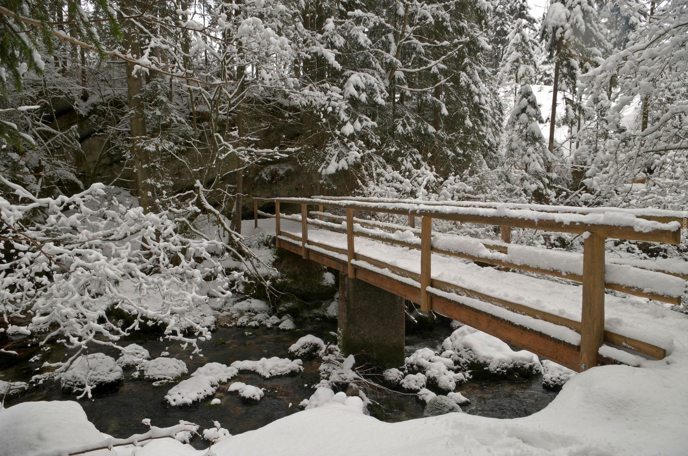 Edytor tapety: Zima, Las, Rzeczka, Mostek