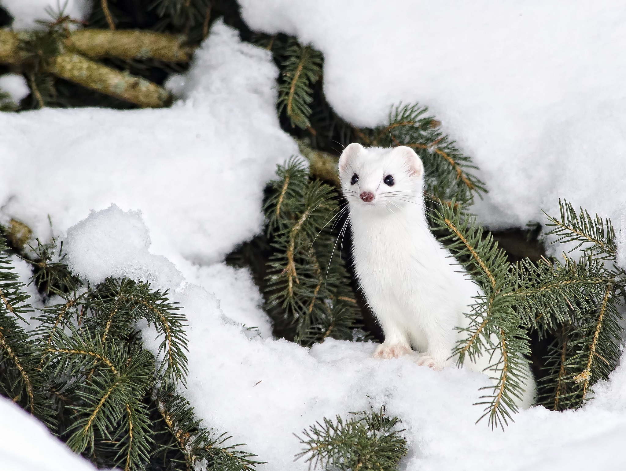 Edytor tapety: Zima, Świerk, Biały, Gronostaj