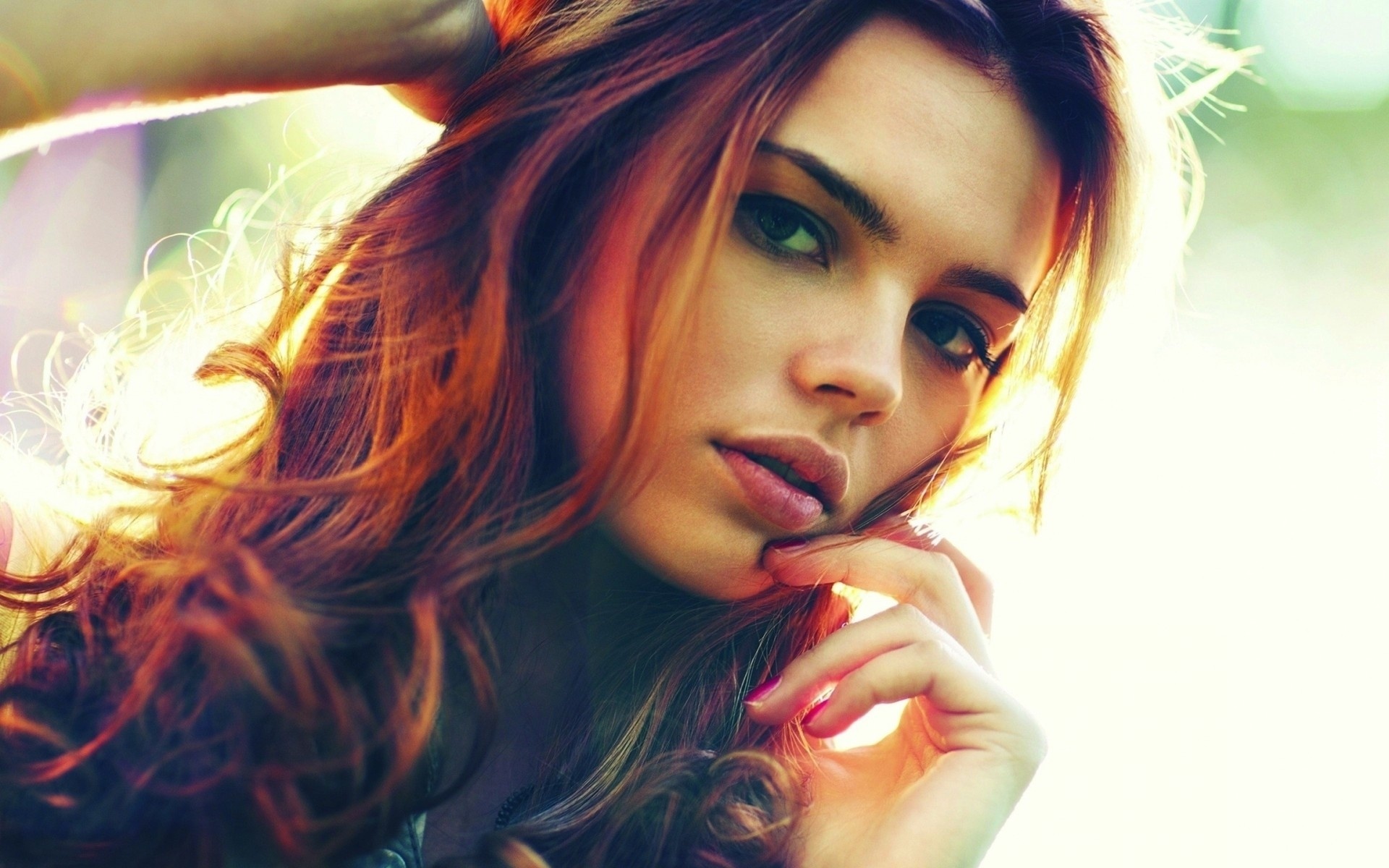 Edytor tapety: Kobieta, Rude, Włosy, Spojrzenie, Makijaż