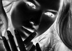 Edytor tapety: Kobieta, Blondynka, Twarz, Spojrzenie, Makijaż, Ręce