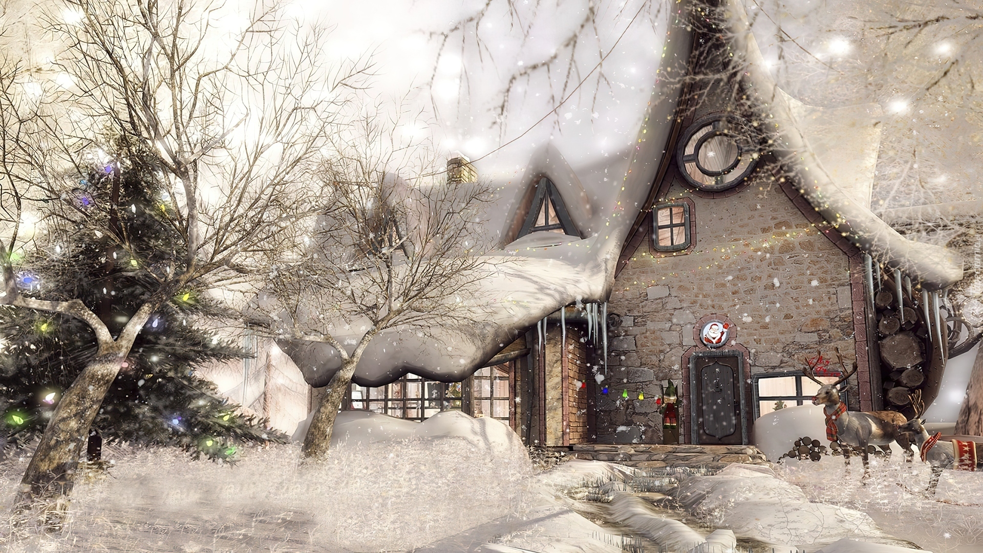 Edytor tapety: Grafika, Zima, Dom, Renifery