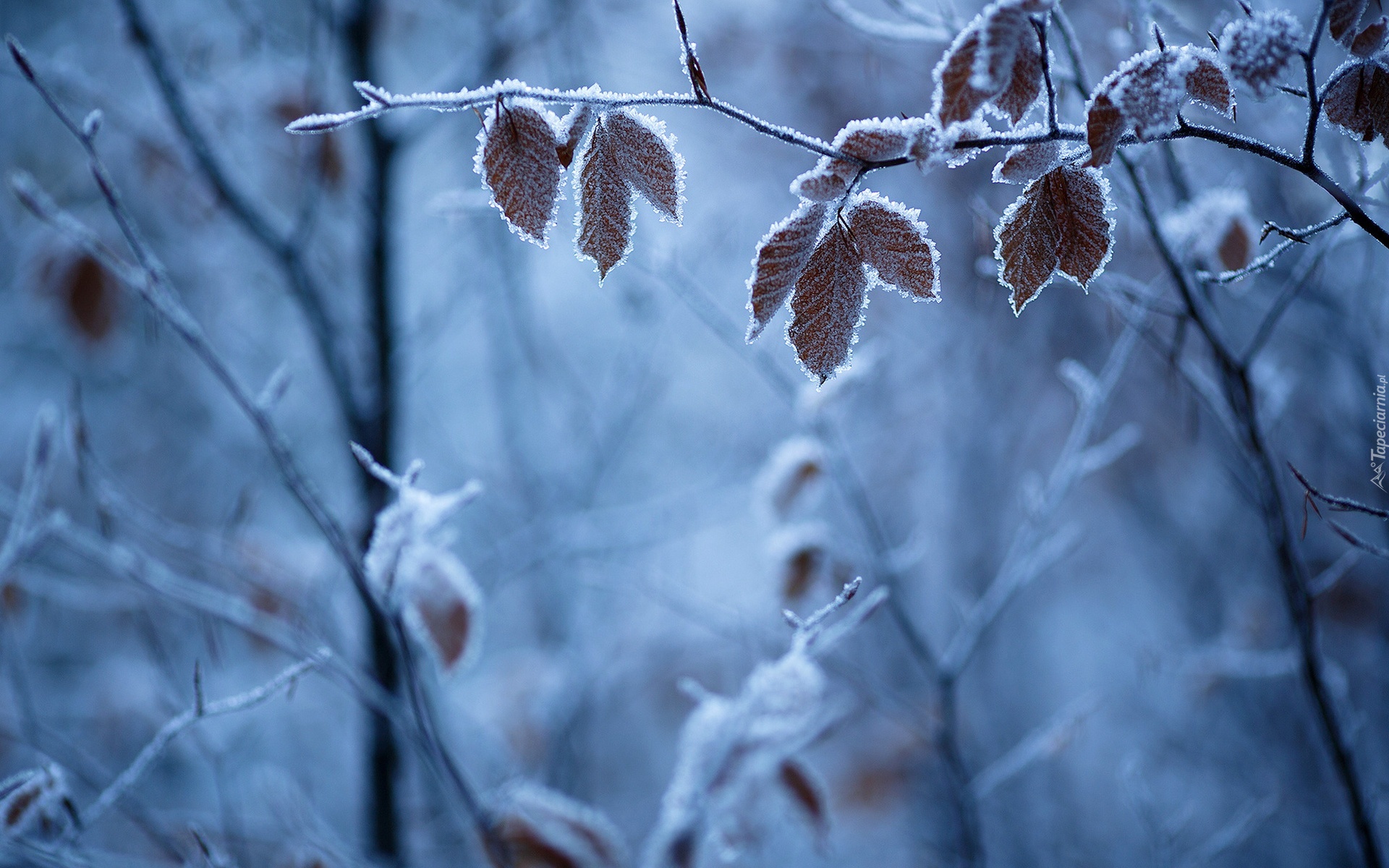 Edytor tapety: Gałąz, Oszronione, Liście, Las, Zima