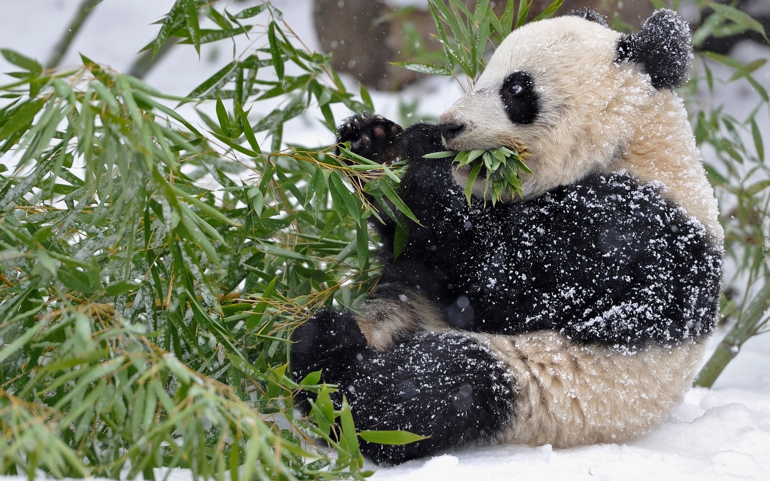 Edytor tapety: Miś, Panda, Gałąz, Pożywienie, Zima