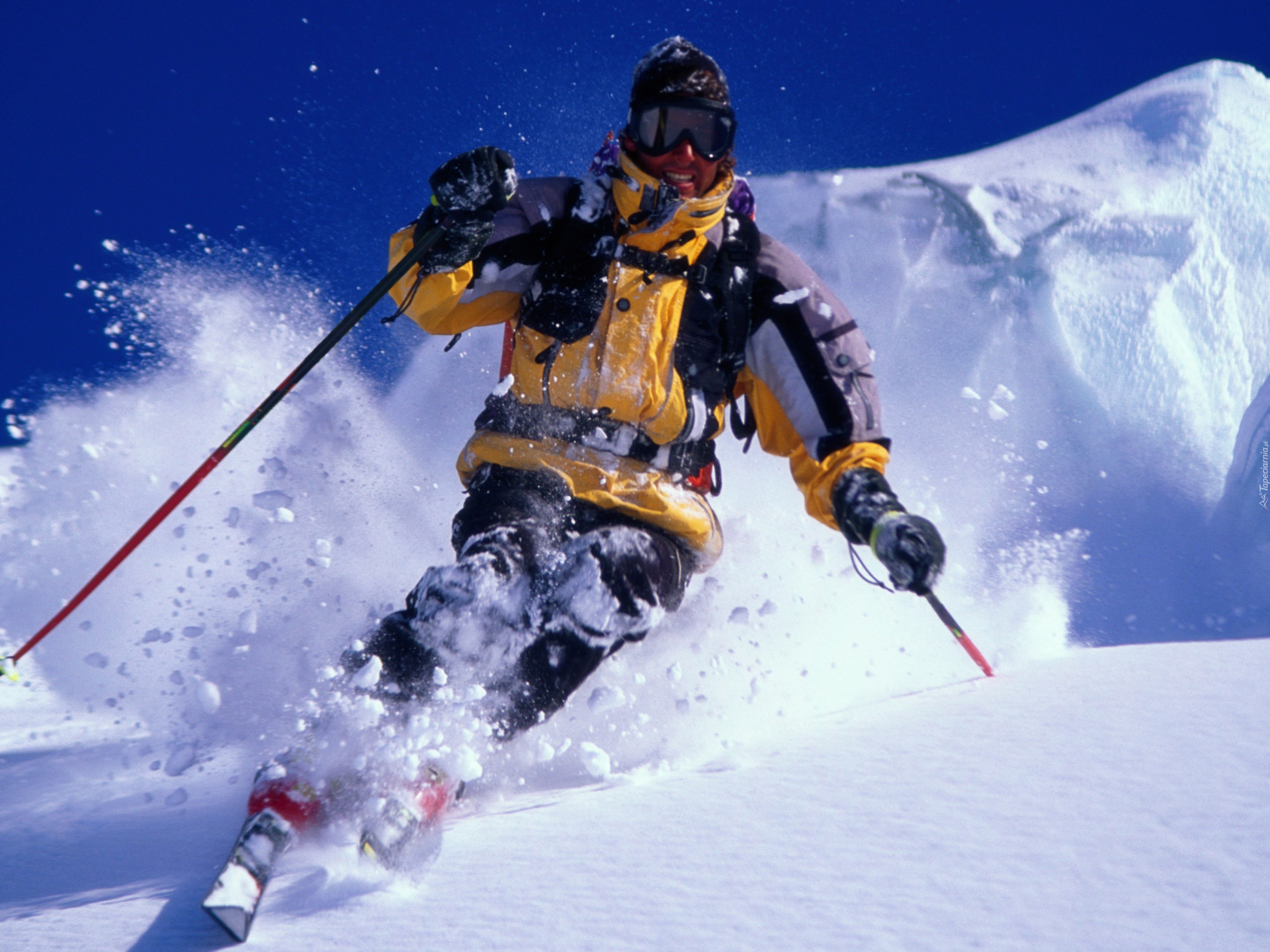 Edytor tapety: Narciarz, Zjazd, Narty, Kijki, Śnieg