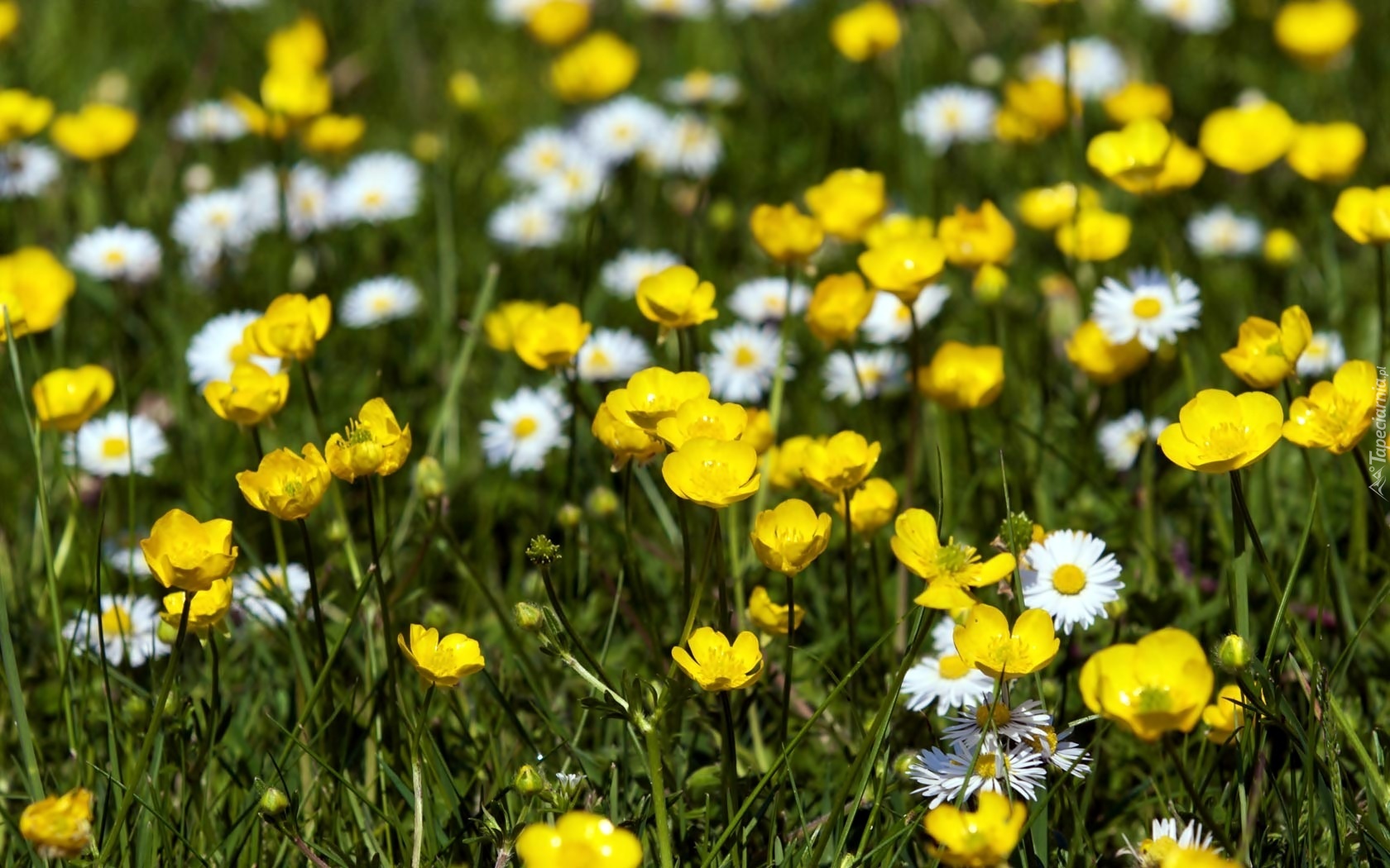 Edytor tapety: Łąka, Kaczeńce, Stokrotki